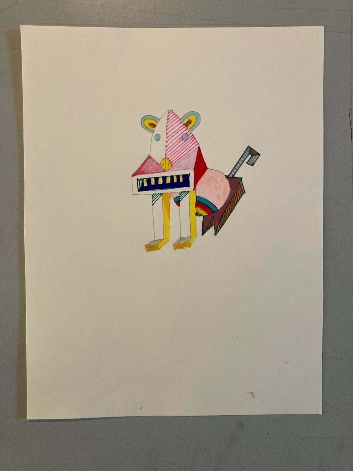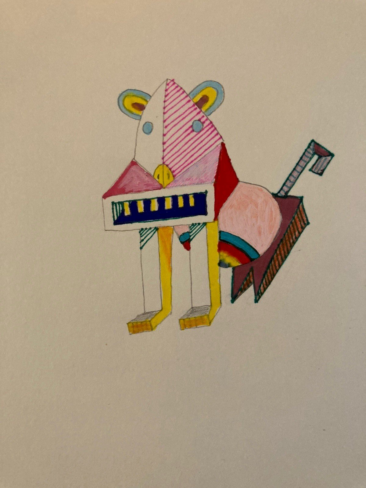 Peinture 1980 Gouache Papier Cubiste Post Cubisme Animal Art XXe Painting