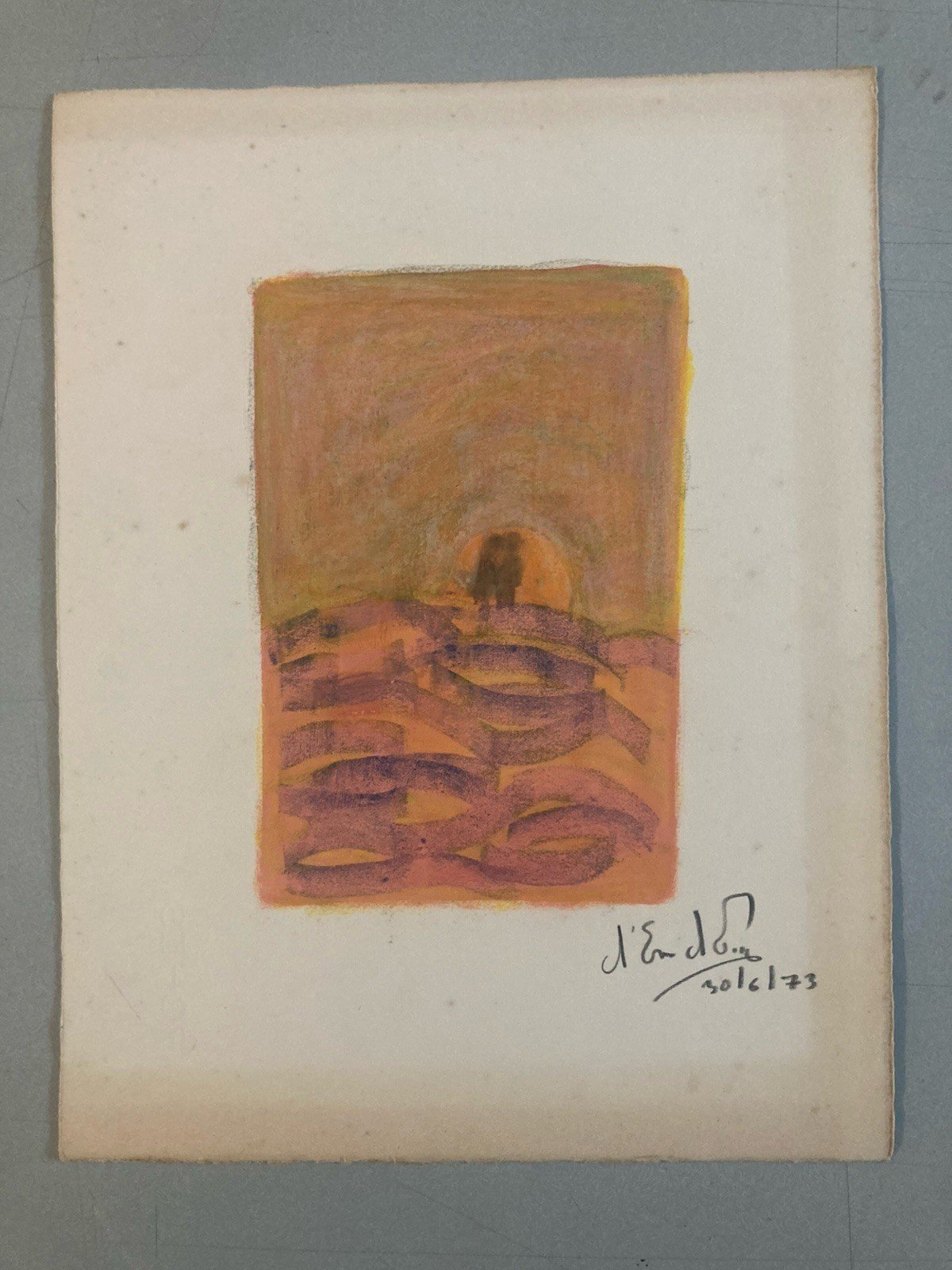 Peinture Abstrait Gouache 1973 Papier Abstraction Charles D’estève De Pradel Art