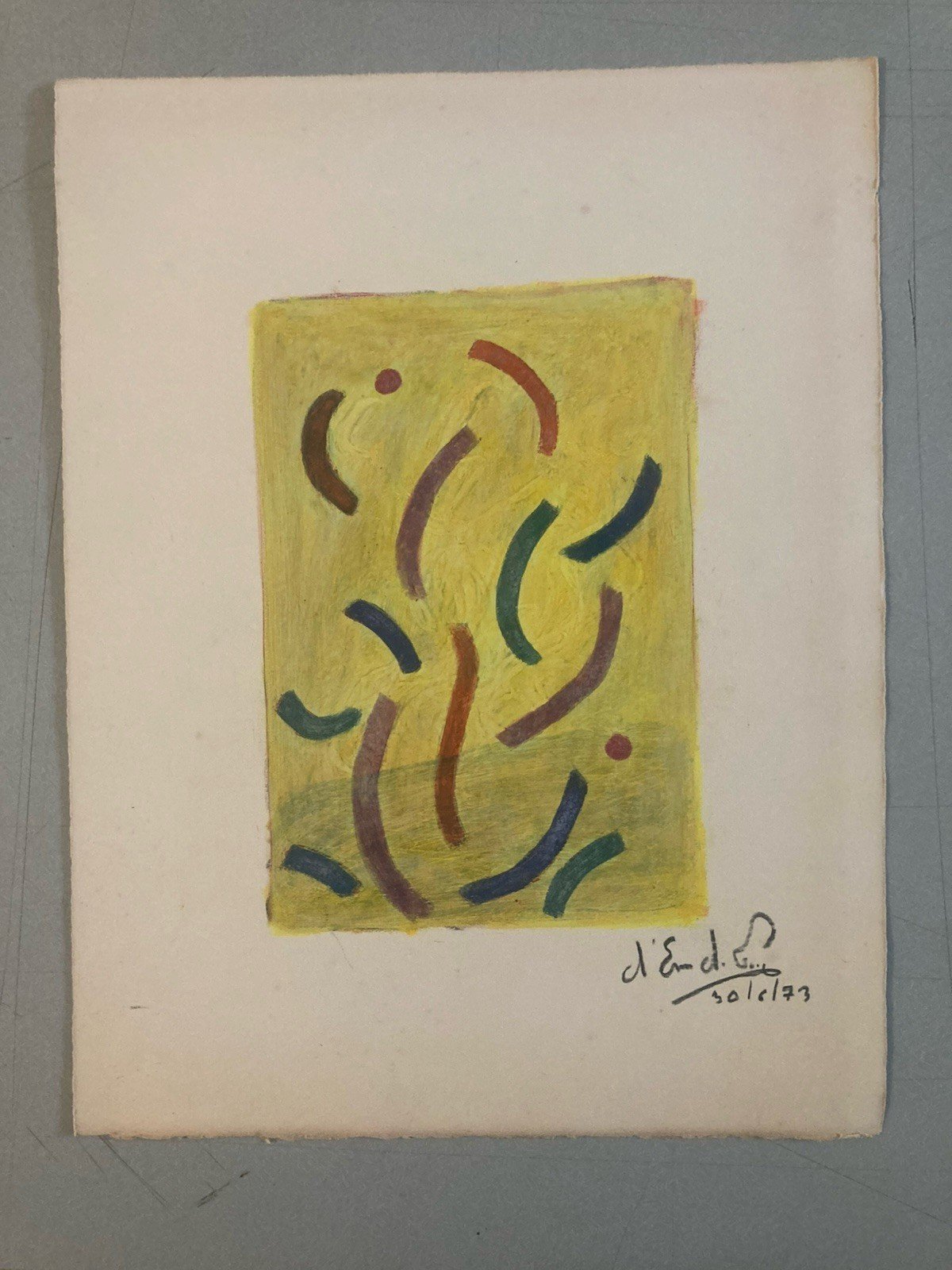 Peinture Abstrait Gouache Papier Abstraction 1973 Charles D’estève De Pradel Art