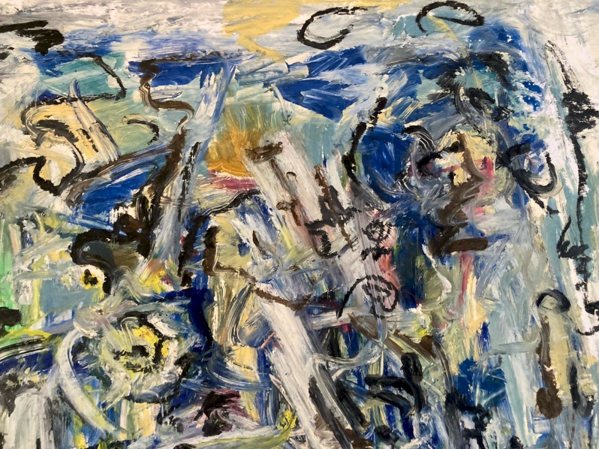 Peinture Abstrait Panneau Art Carton Ancien abstraction 1990 À Identifier