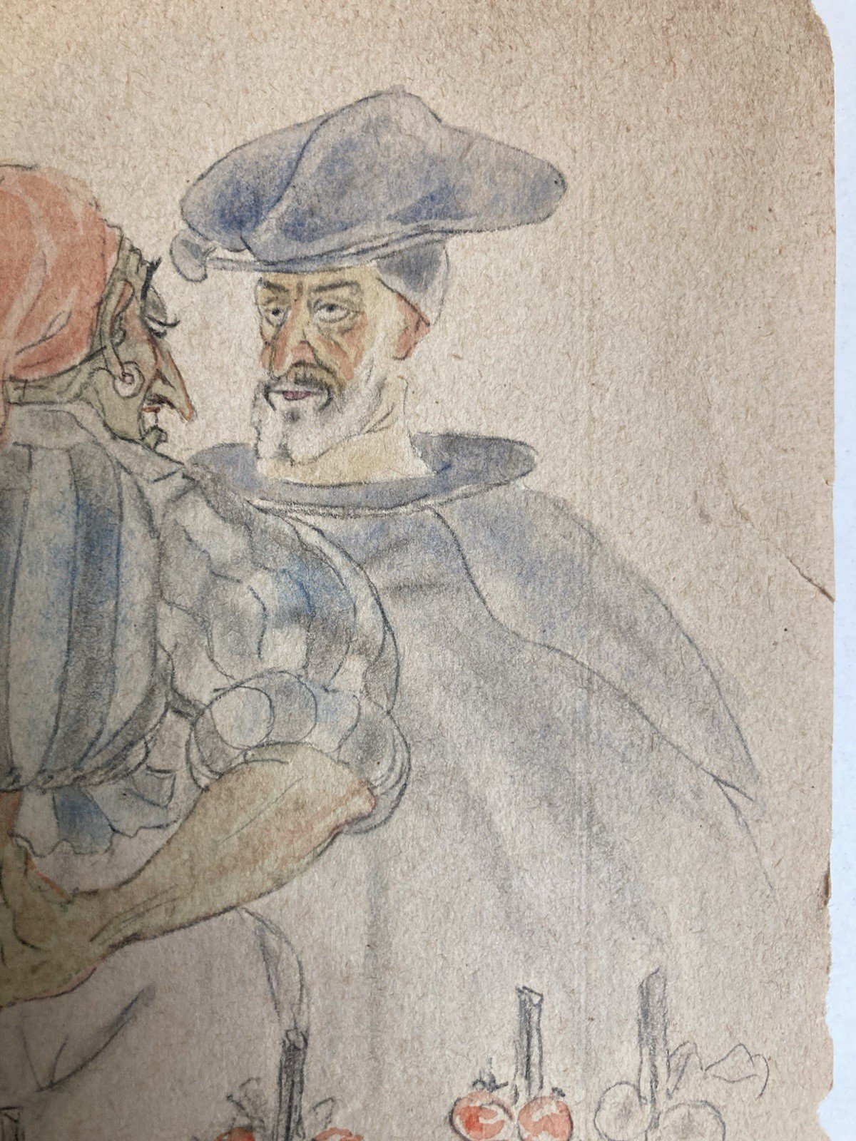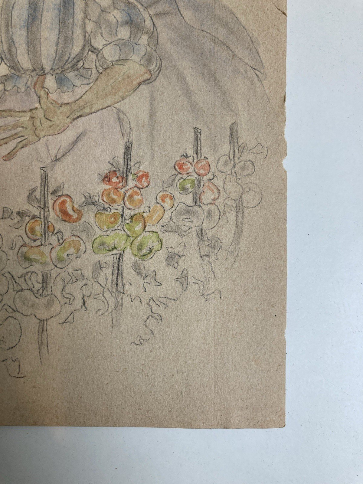 Aquarelle sur papier À identifier Type:Aquarelle Style:1940-1960 Genre:Expressionnisme Caractéristiques:Sur Papier Thème:Personnage Pays d'origine:France