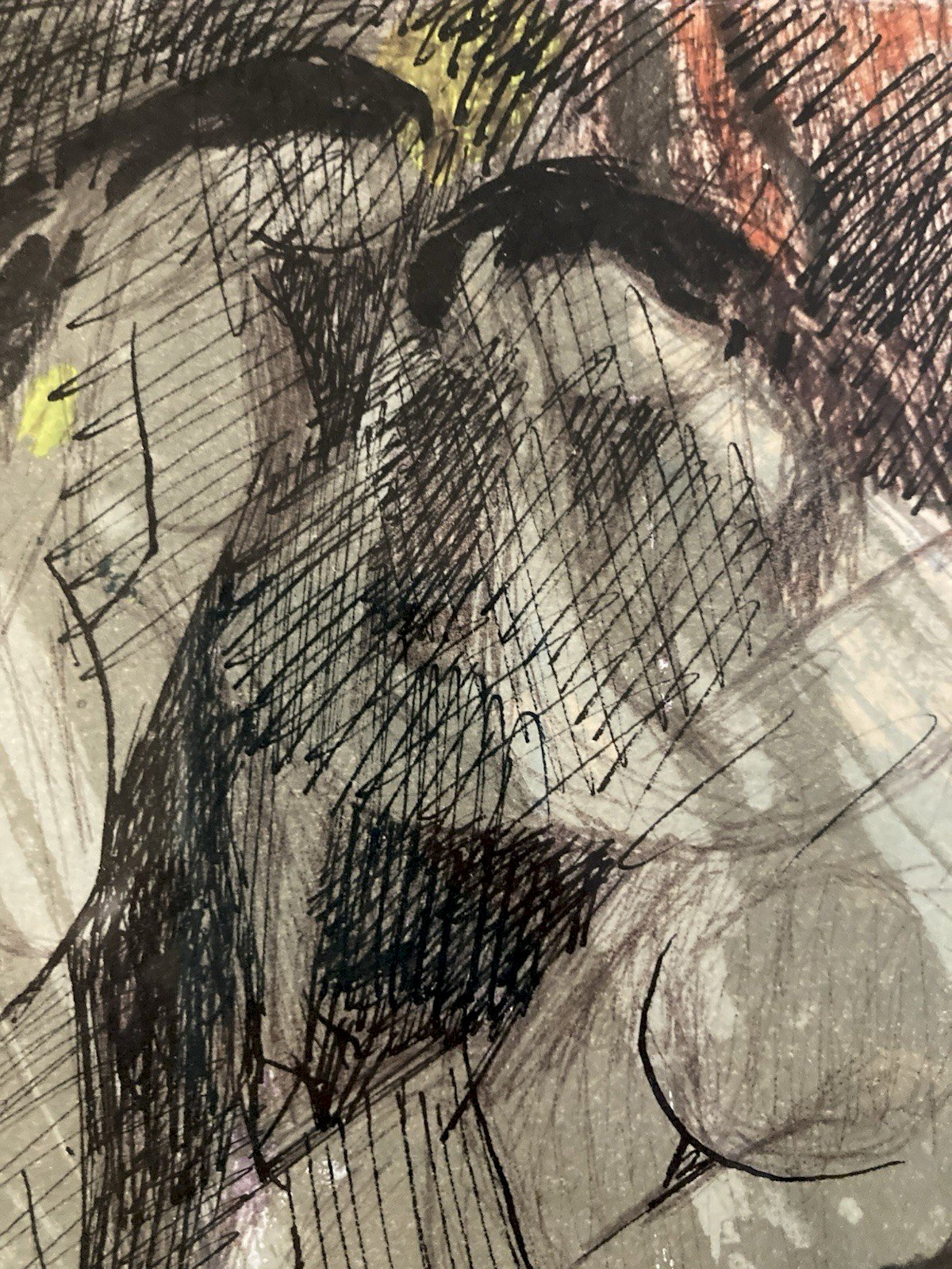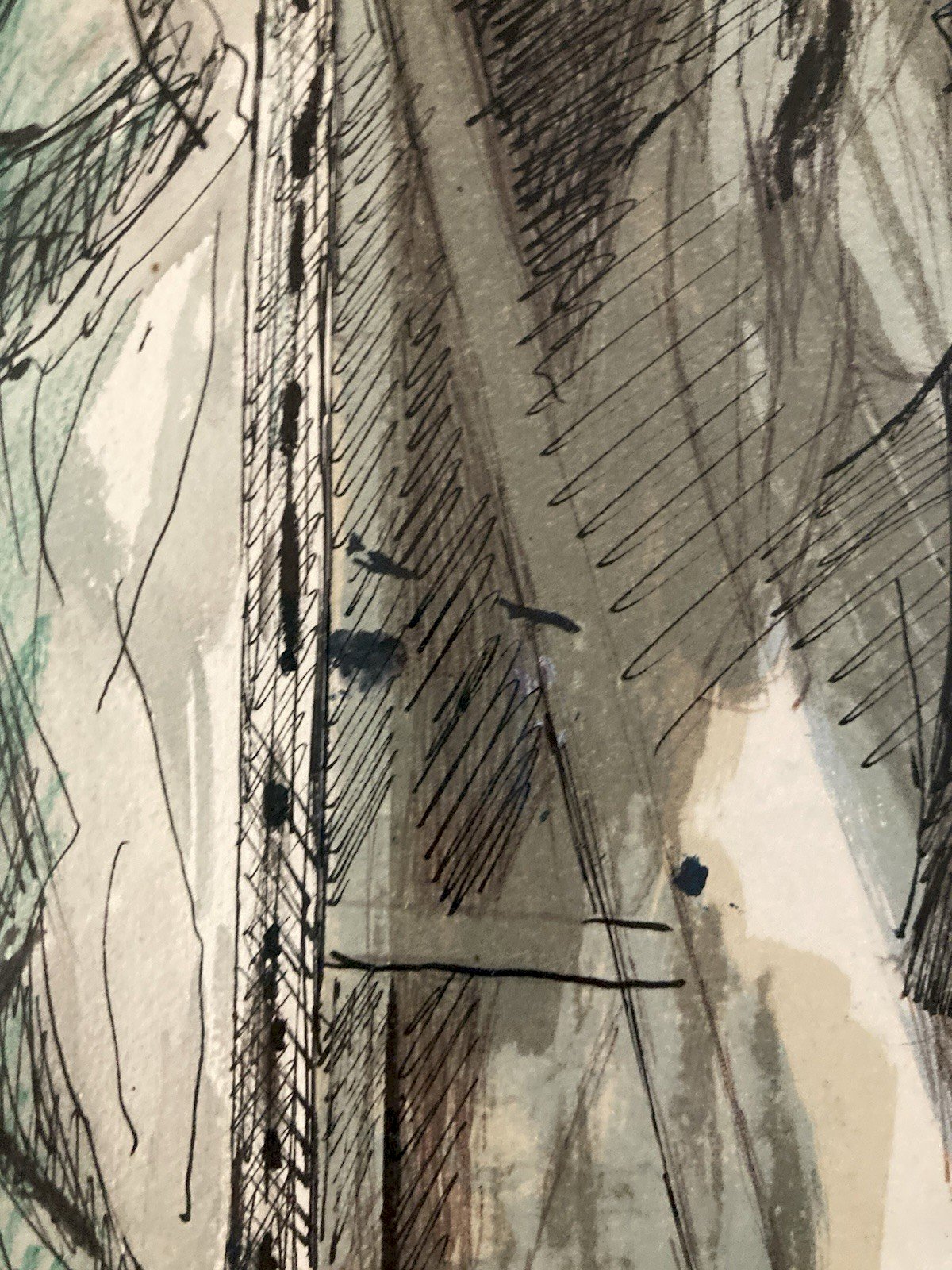 Peinture Aquarelle Jean Bertholle Femme Nue Nu Art 1980 Post Cubisme