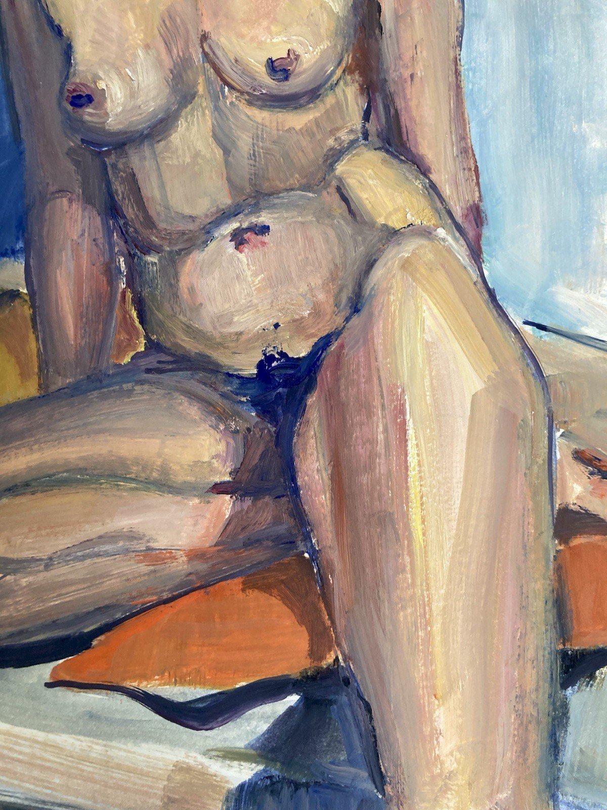 Peinture Art Gouache 1970 Corps Nu Nue Assis Erotique Femme A Identifier