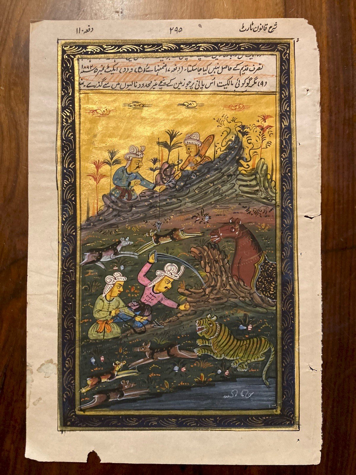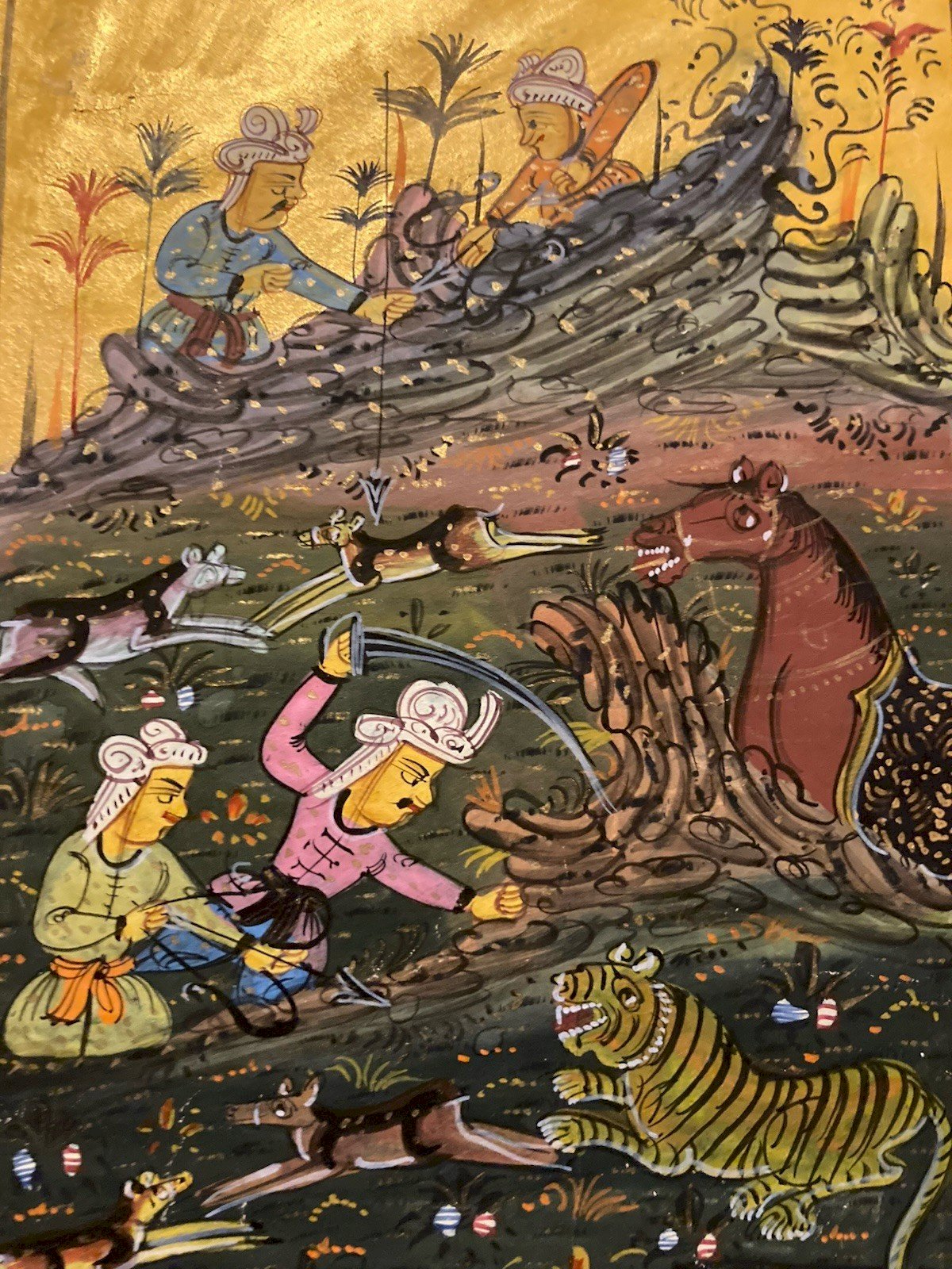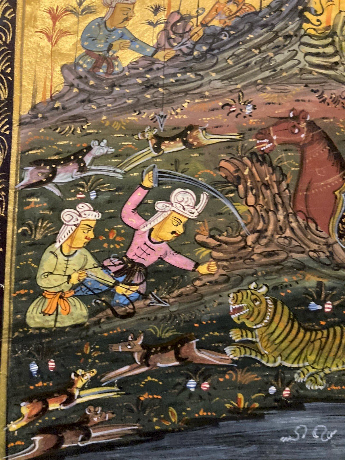 Peinture Art Perse Illustration 1900 Orient Orientaliste Chasse Tigre