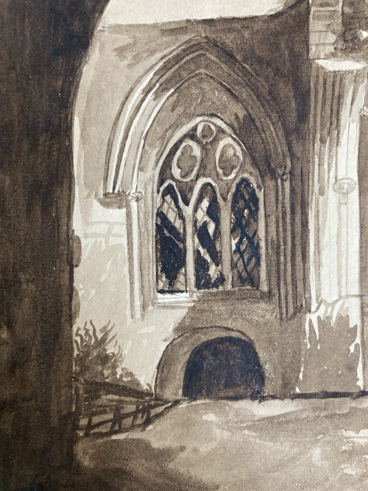 Peinture Dessin XIXe 1820 Encre Lavis Eglise Cathédrale Ruines Ancien Art Porche