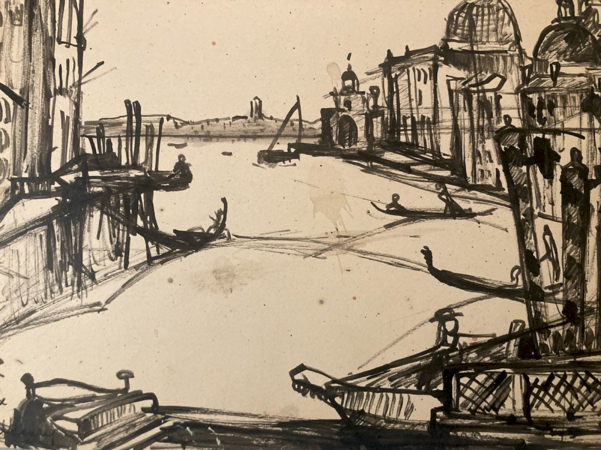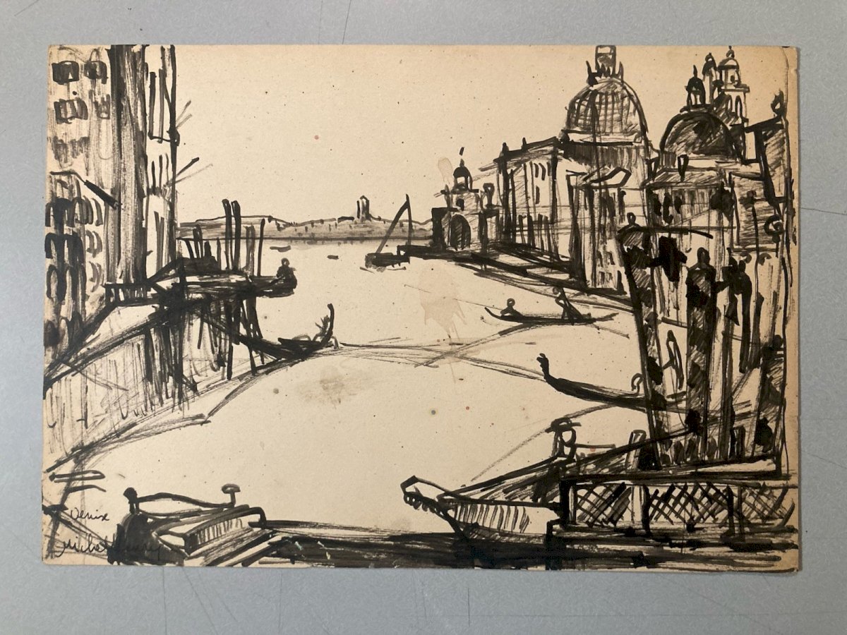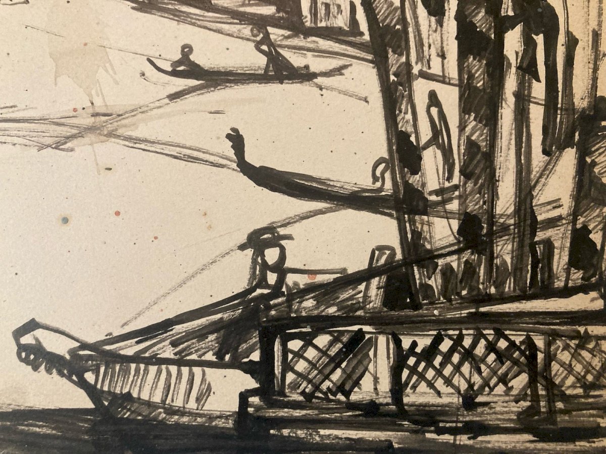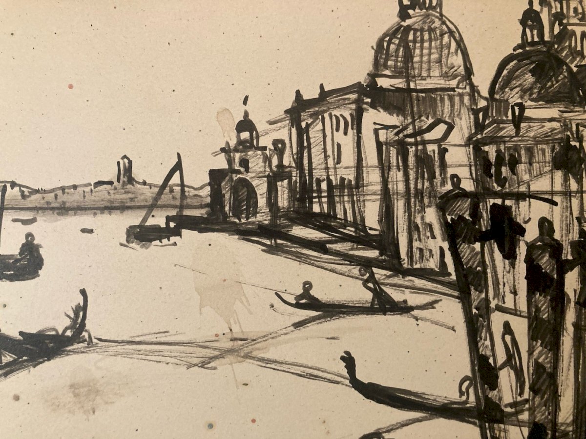 Peinture Encre Michel Henry (1928 2016) Venise Italie Méditerranée 1954