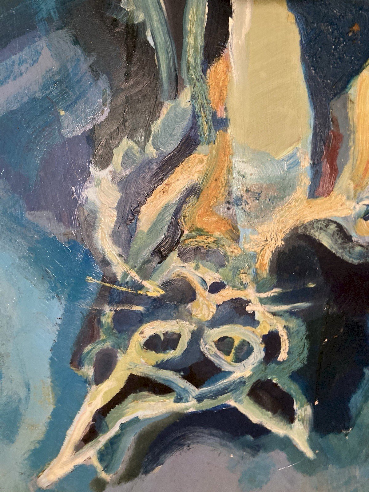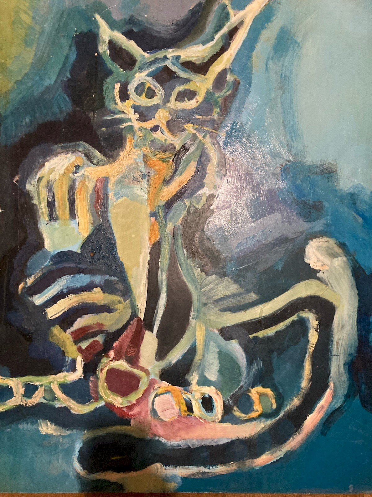 Peinture fauve Huile sur panneau Chat Animal 1970 Art Expressionnisme