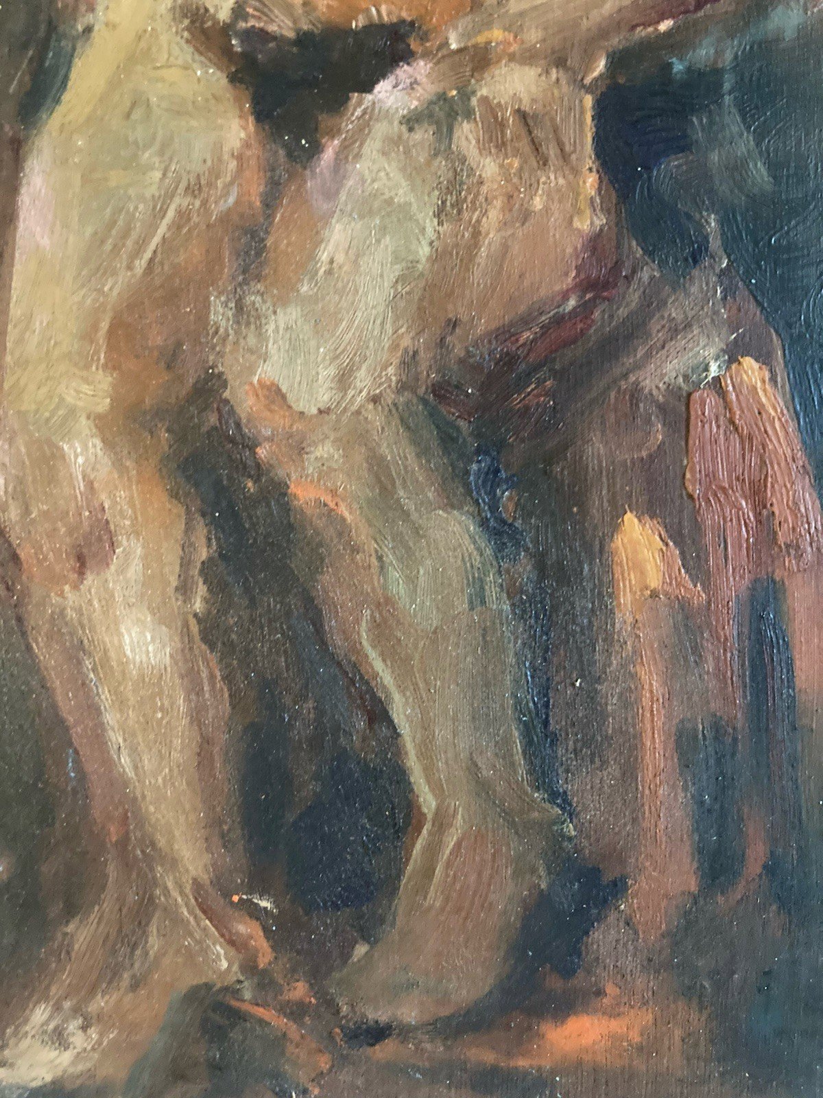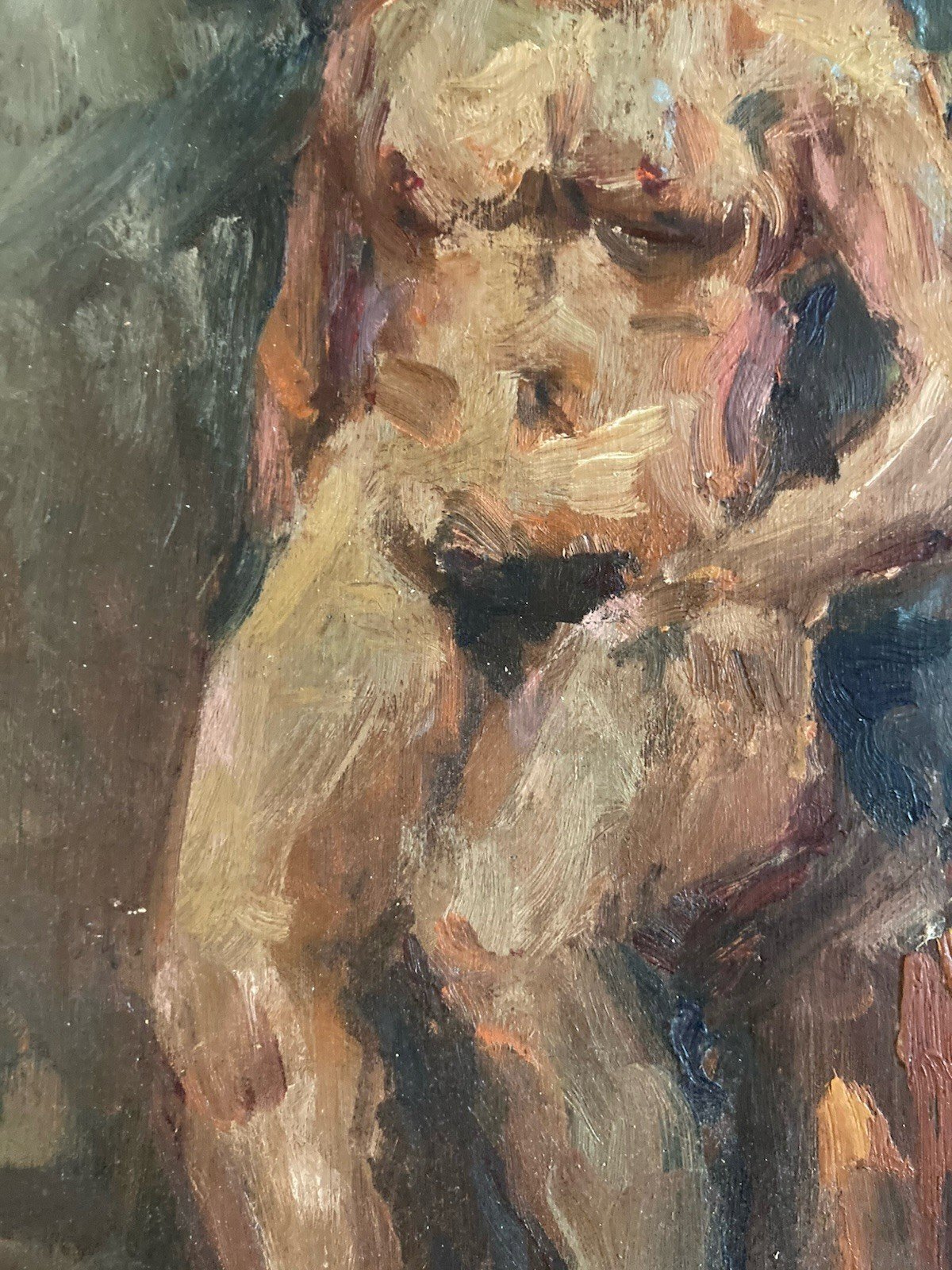 Peinture Femme Nue Nu Huile Carton Expressionnisme 1980 Expressionniste
