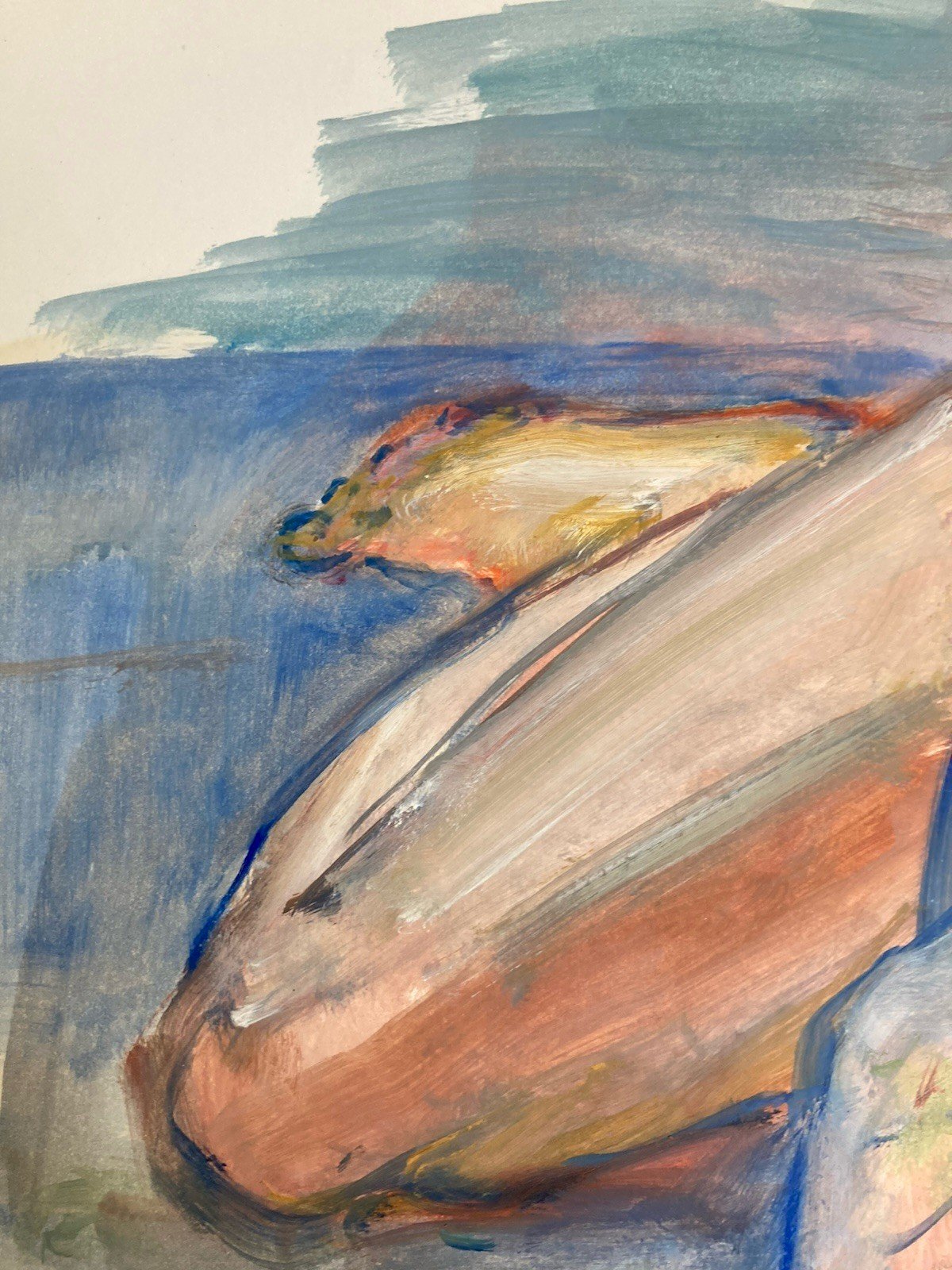 Peinture Femme Art Gouache 1970 Corps Nu Nue Erotique A Identifier