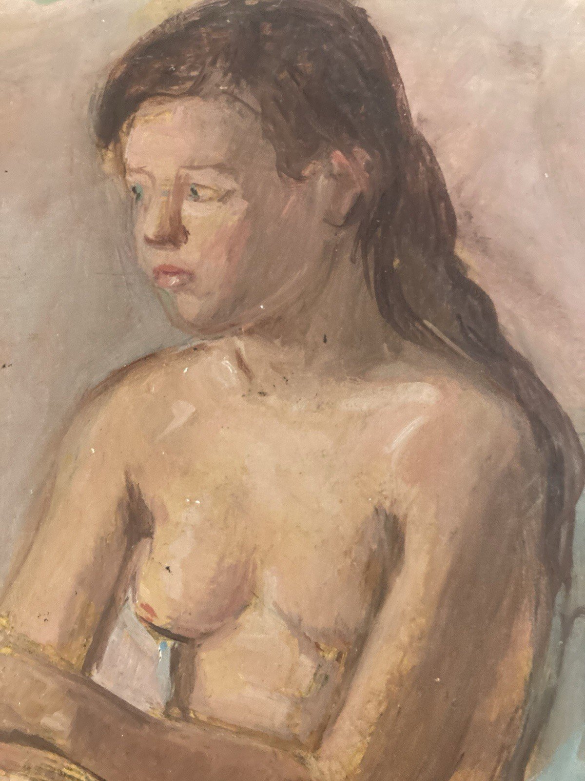 Peinture Femme Nue Nu Hippolyte Lety 1950 Huile Carton Expressionnisme Ancien