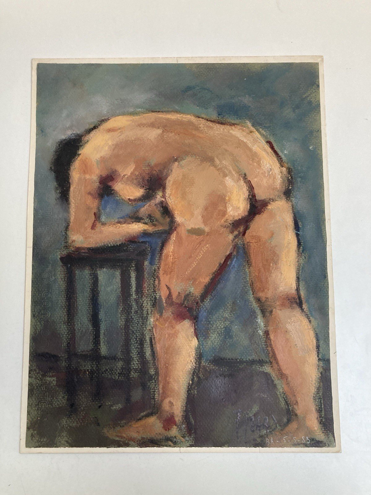 Peinture Femme Nue Nu Huile Carton Expressionnisme 1980 Expressionniste Atelier