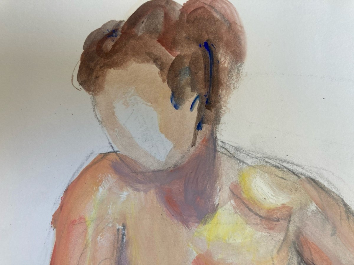 Peinture Gouache 1970 Art Corps Nu Nue Erotique Femme A Identifier XXe
