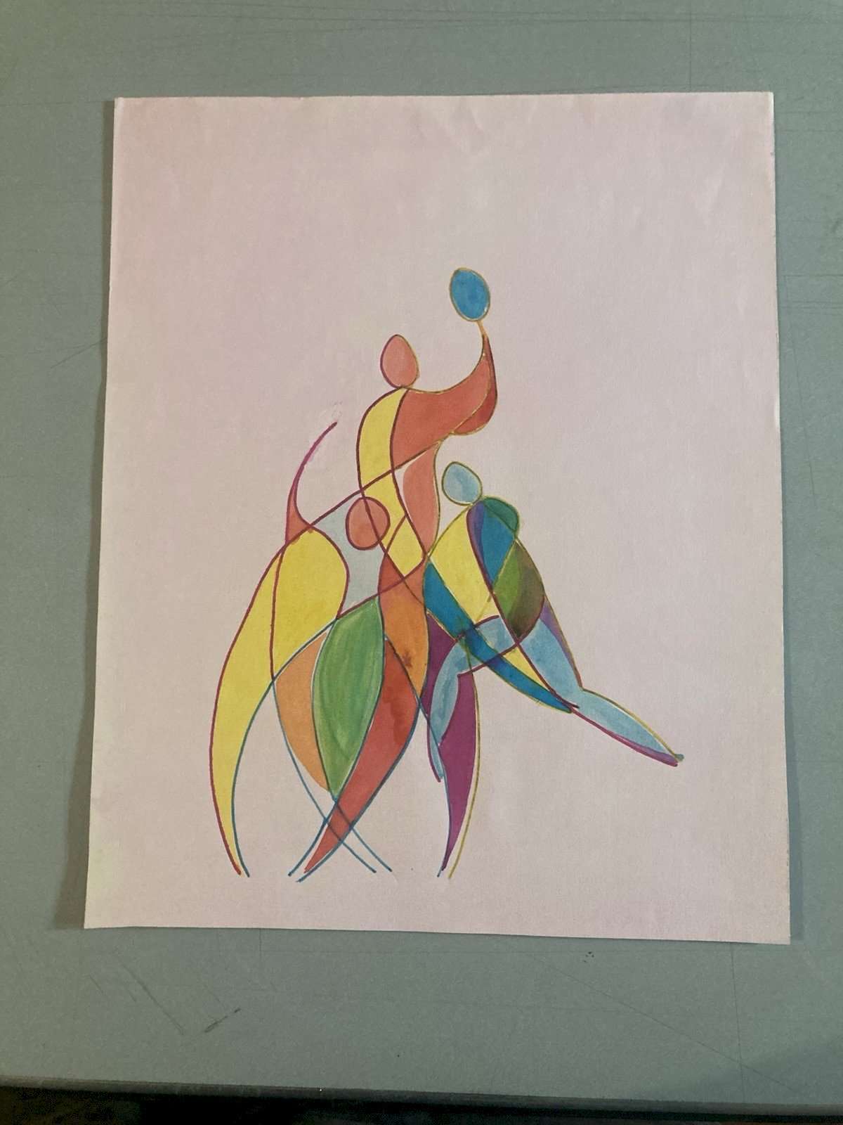 peinture Gouache 1970 Papier sport, ballon rugby Volley Ball Art Portrait