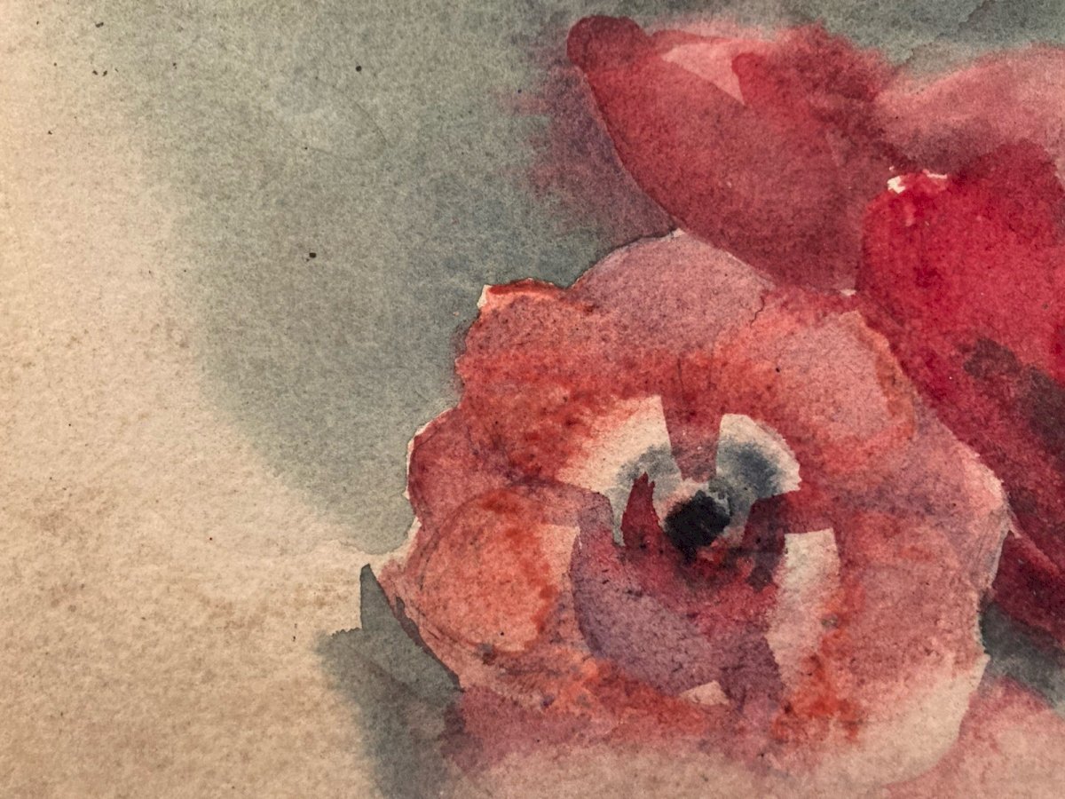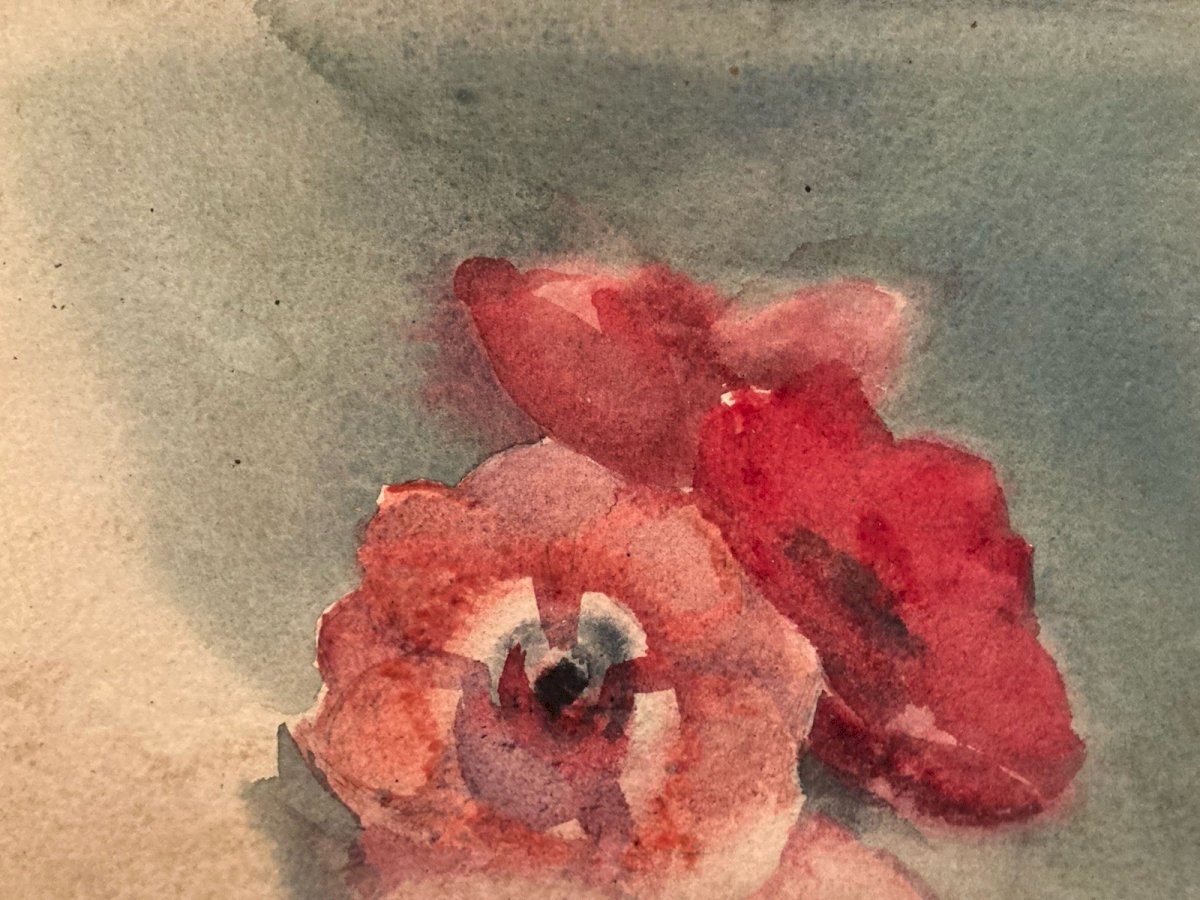 Peinture Gouache Aquarelle Rose Bouquet Fleurs Fleur 1930 Art Deco Ancien