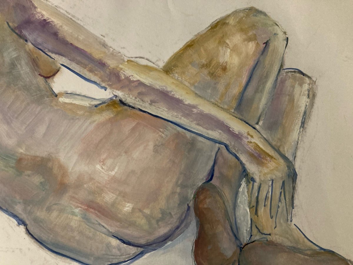 Peinture Gouache Art Corps 1970 Nu Nue Erotique Femme A Identifier XXe