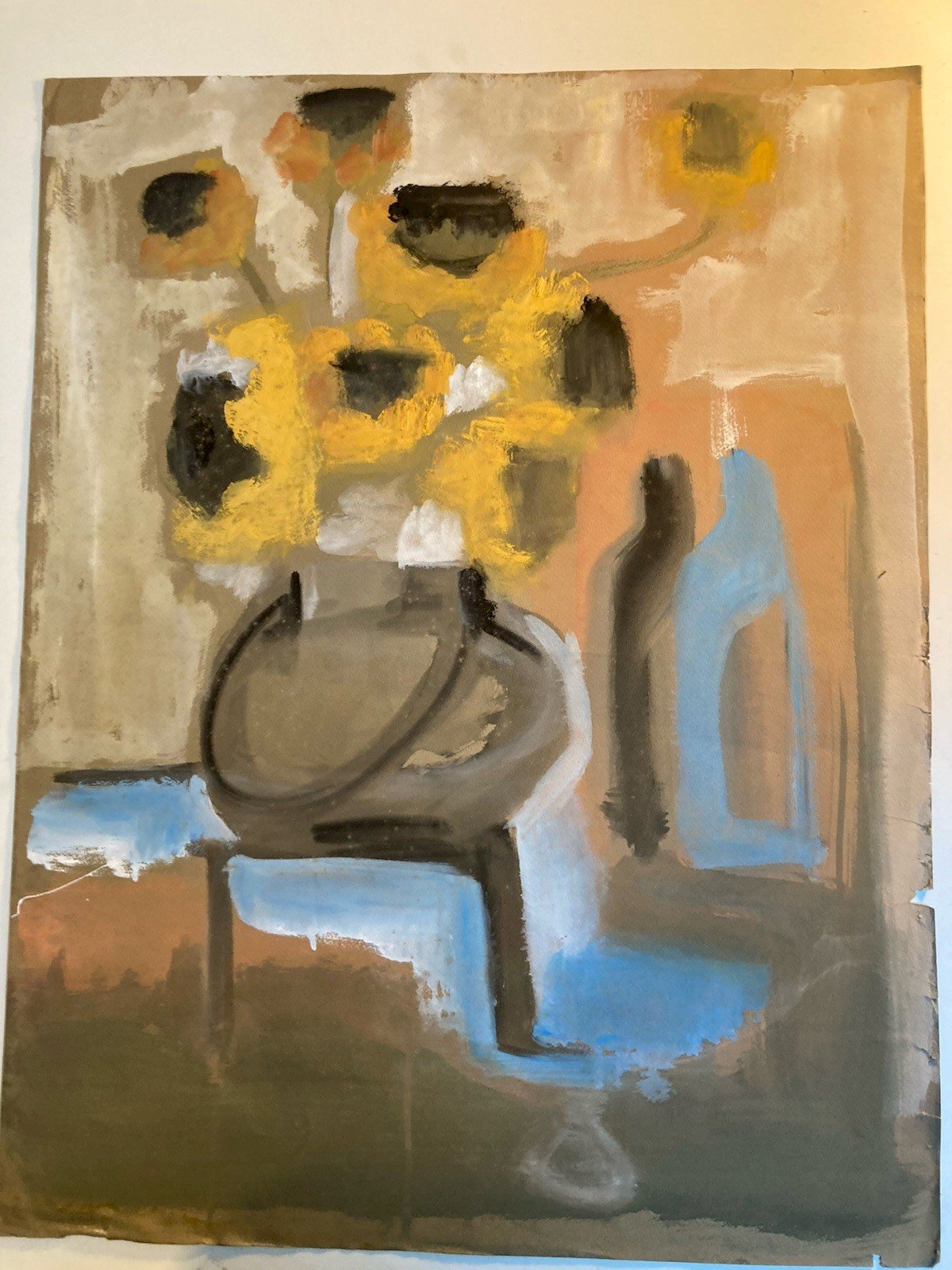 Peinture Gouache Fleur Tournesols Dessin Papier 1960 Art Vase Bouquet