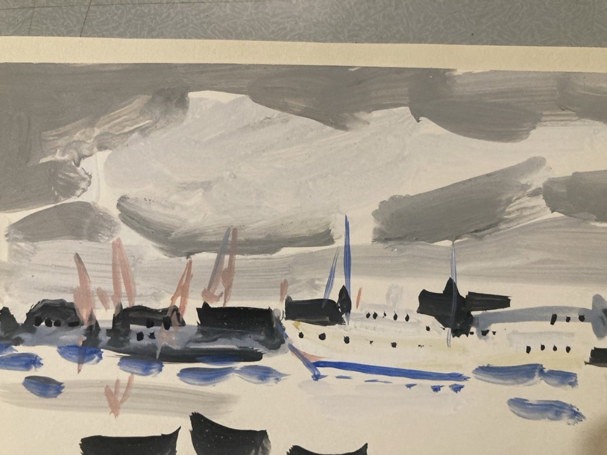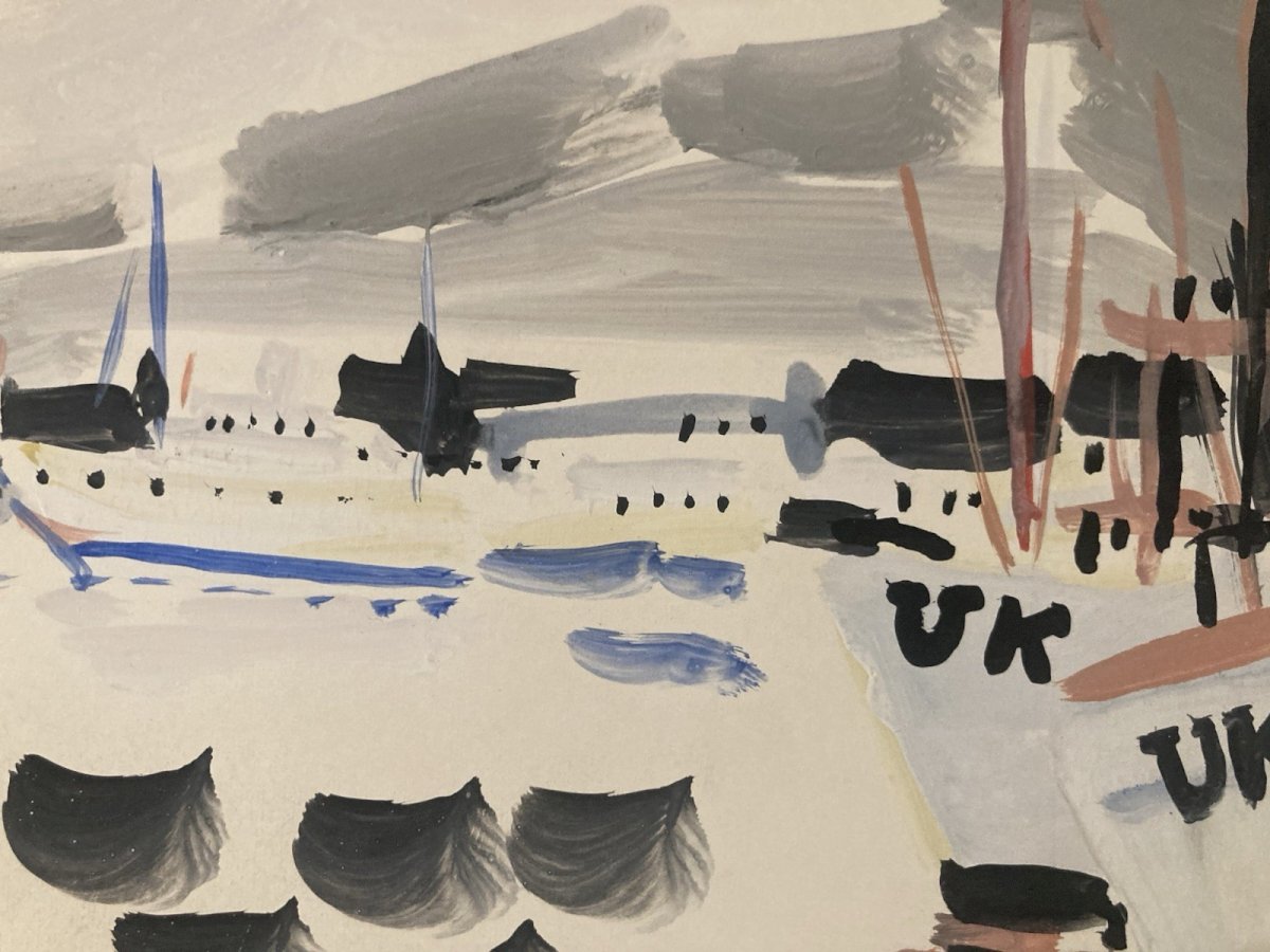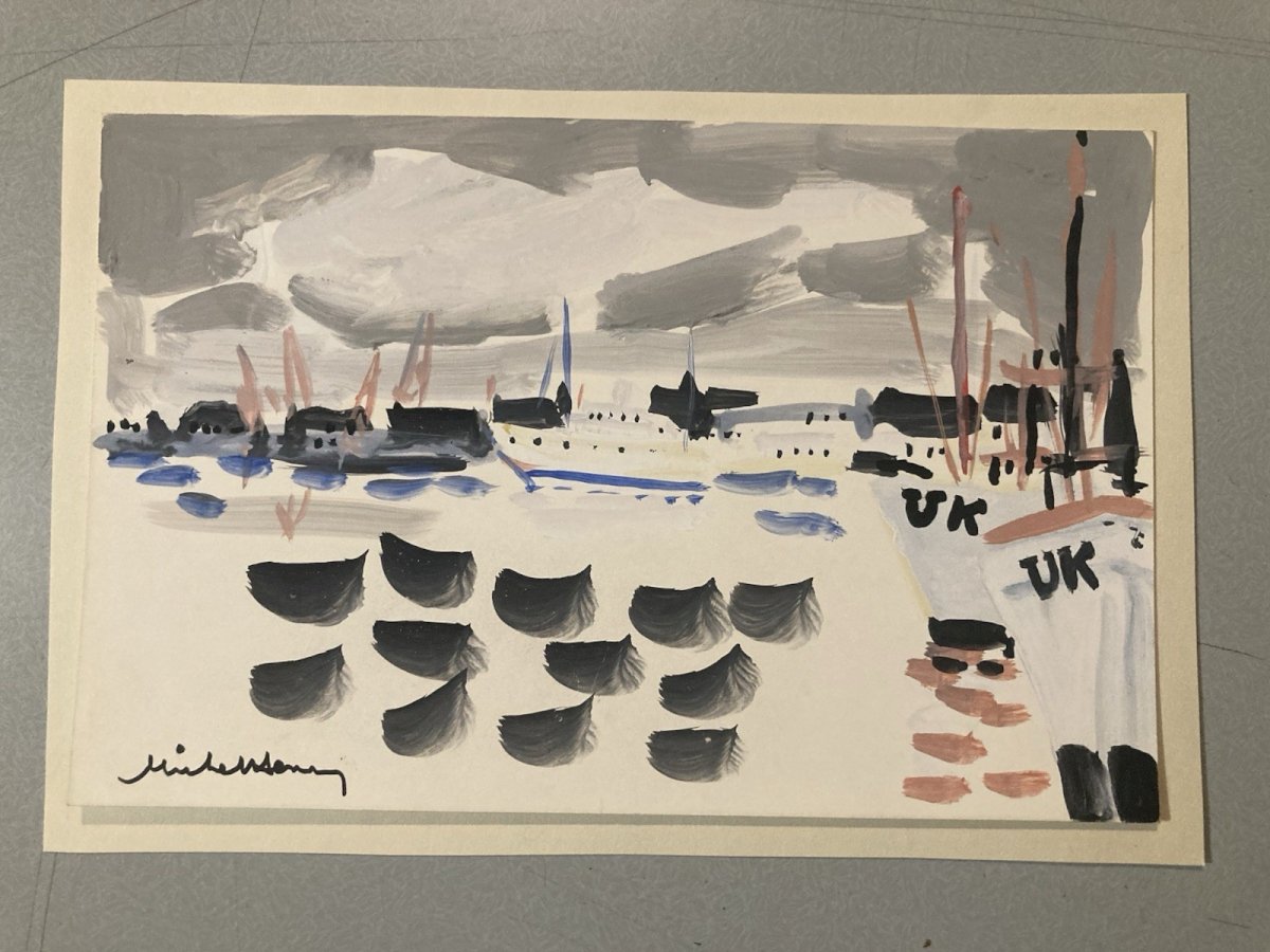 Peinture gouache Michel Henry (1928 2016) Marine Bateau UK Angleterre 1960