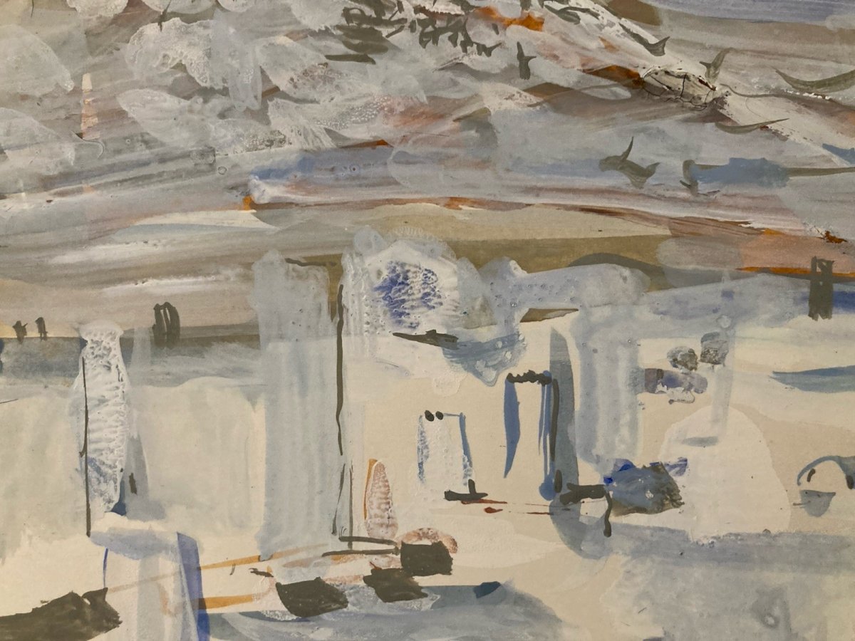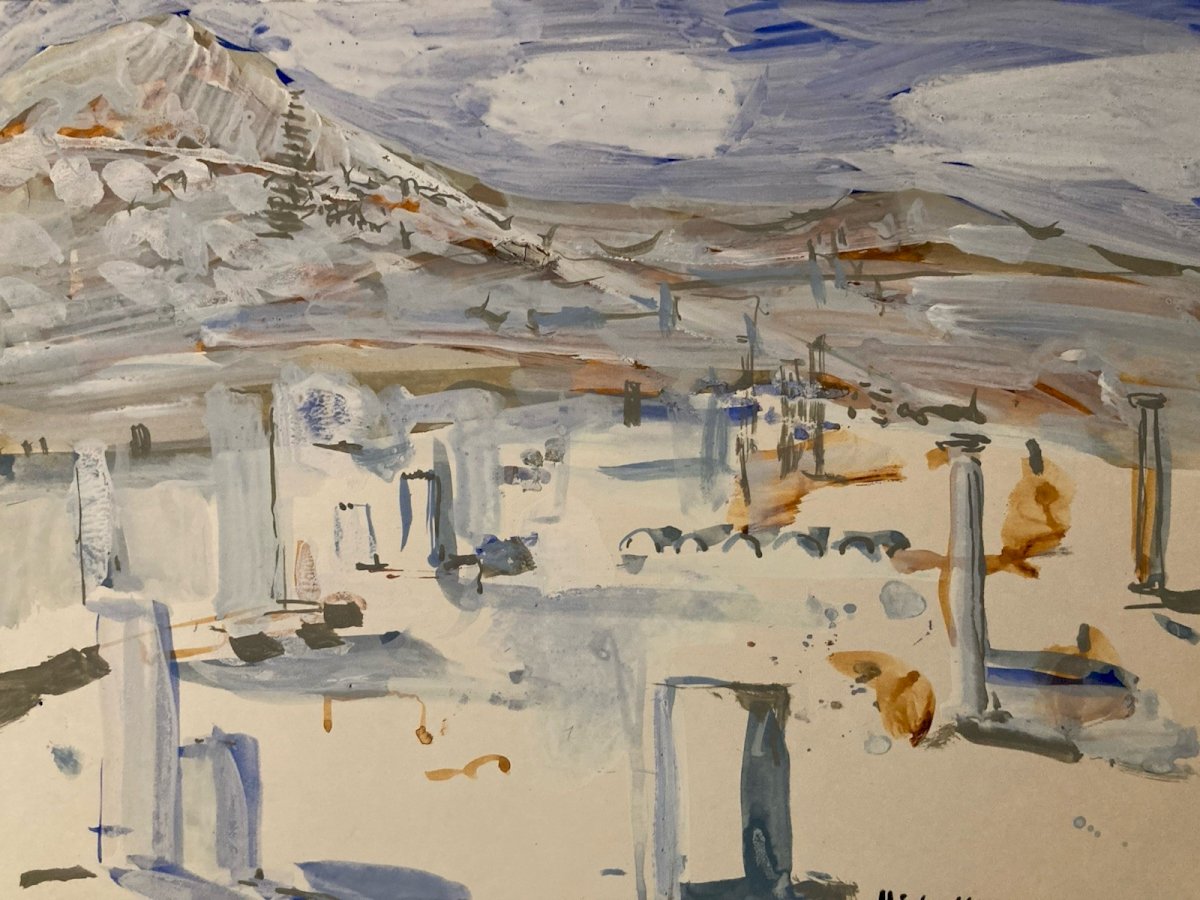 Peinture gouache Michel Henry Démos Grèce Grecque Île Antique 1955 Architecture