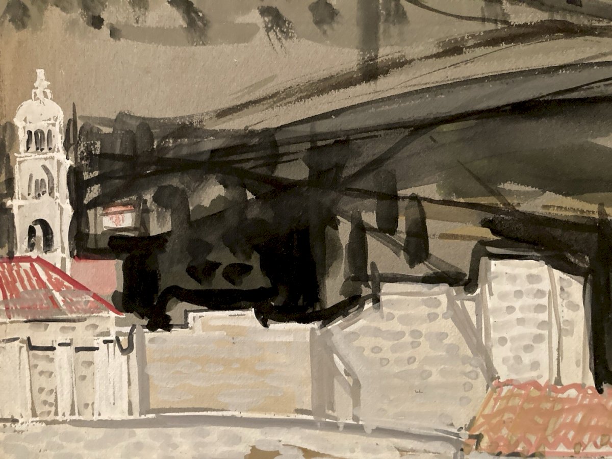 Peinture gouache Michel Henry Dubrovnik Yougoslavie Croatie 1955 Architecture