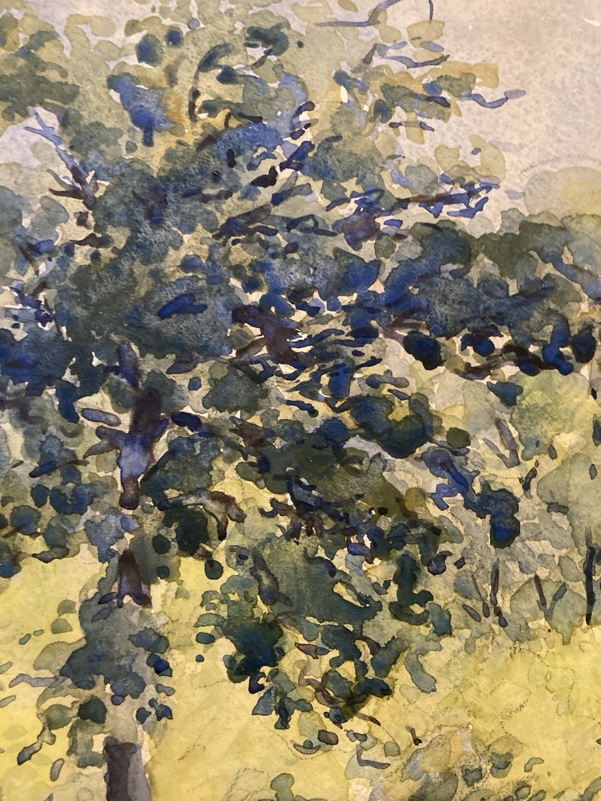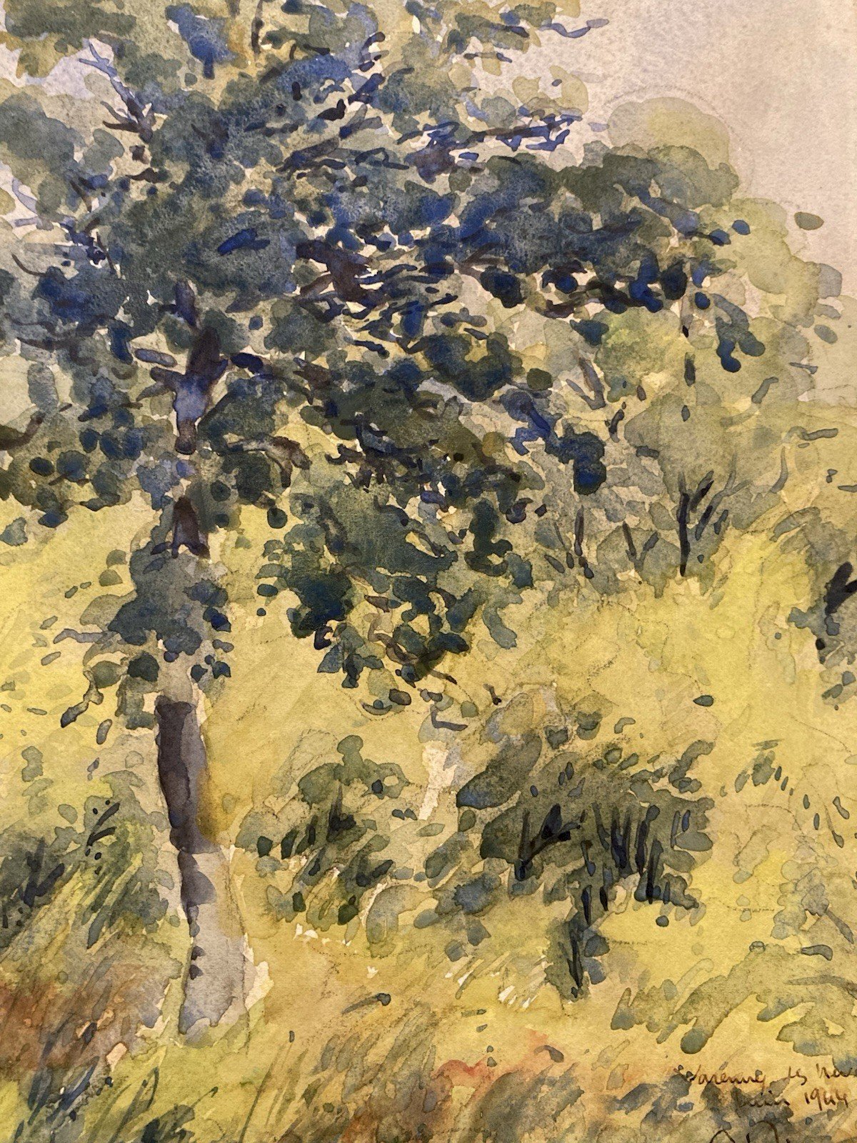peinture Gouache Papier 1940 paysage impressionniste Pointillisme Ancien