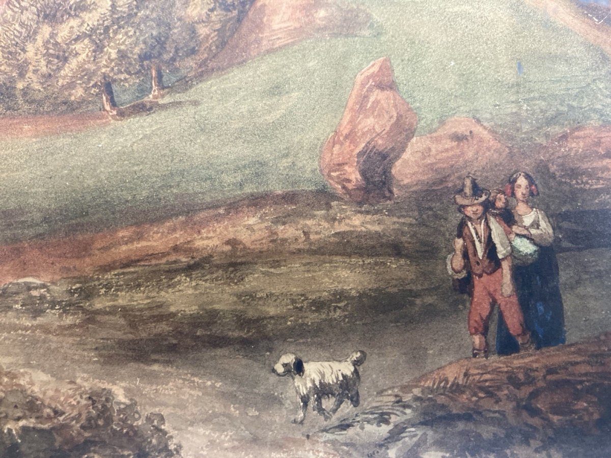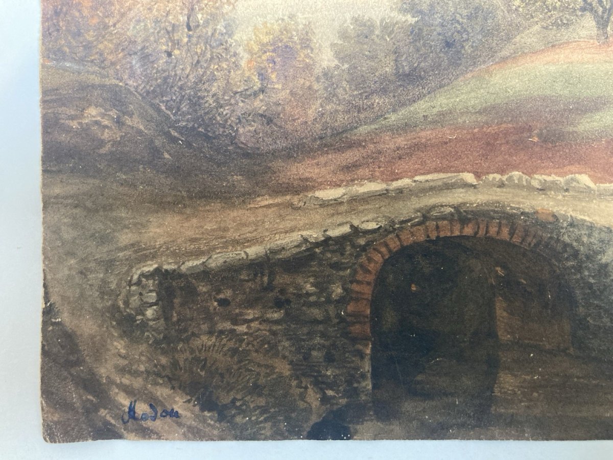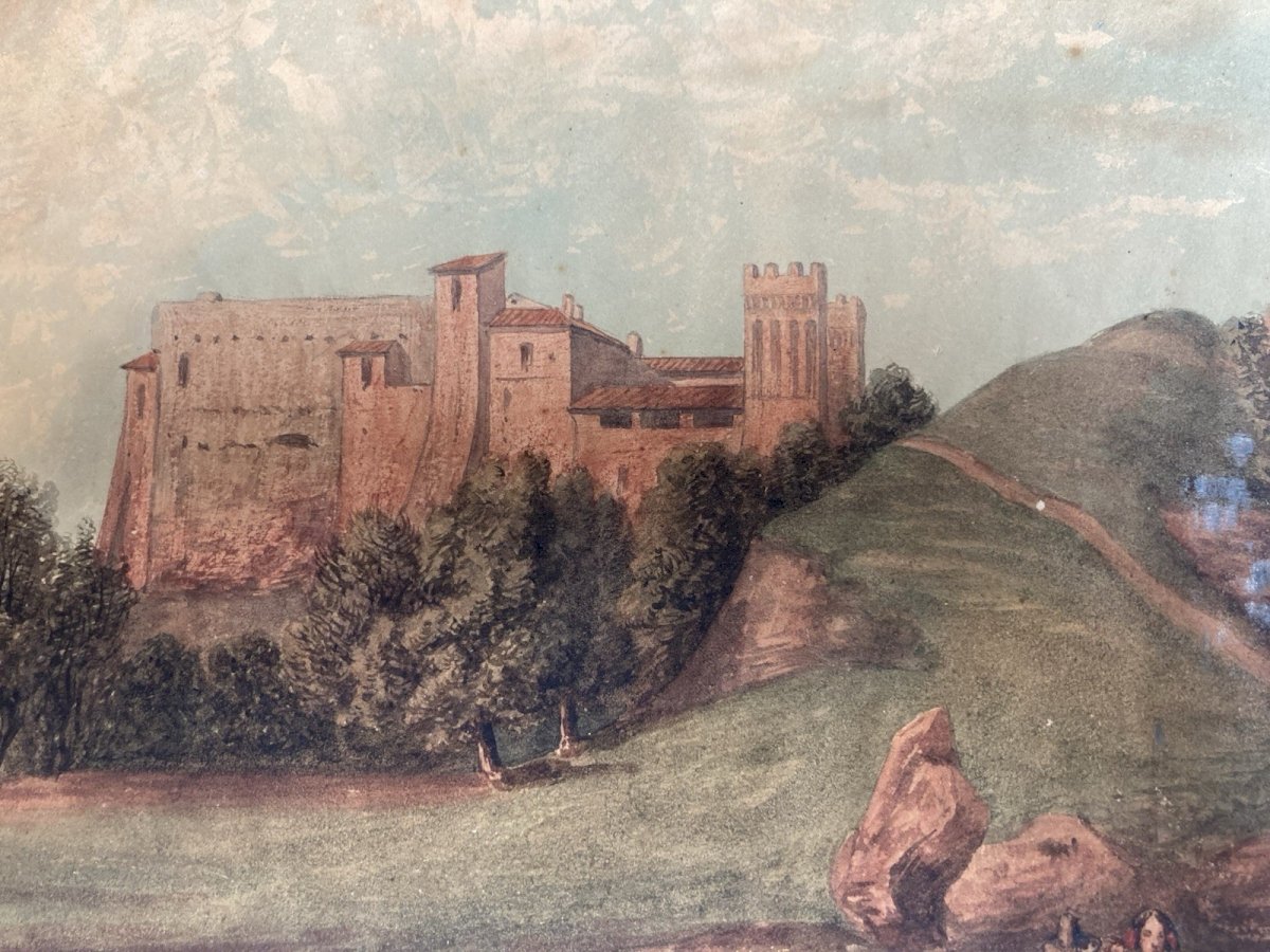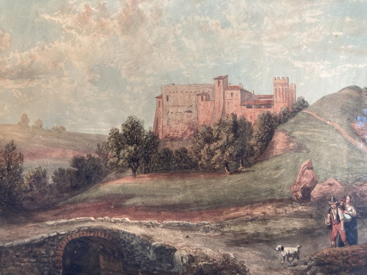 Peinture gouache Papier Paysage Toscane Italie XIXe Art Jean-Baptiste MADOU