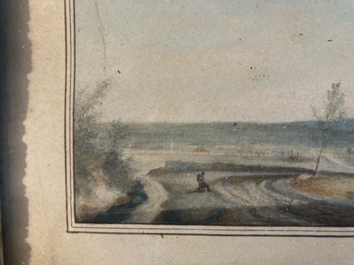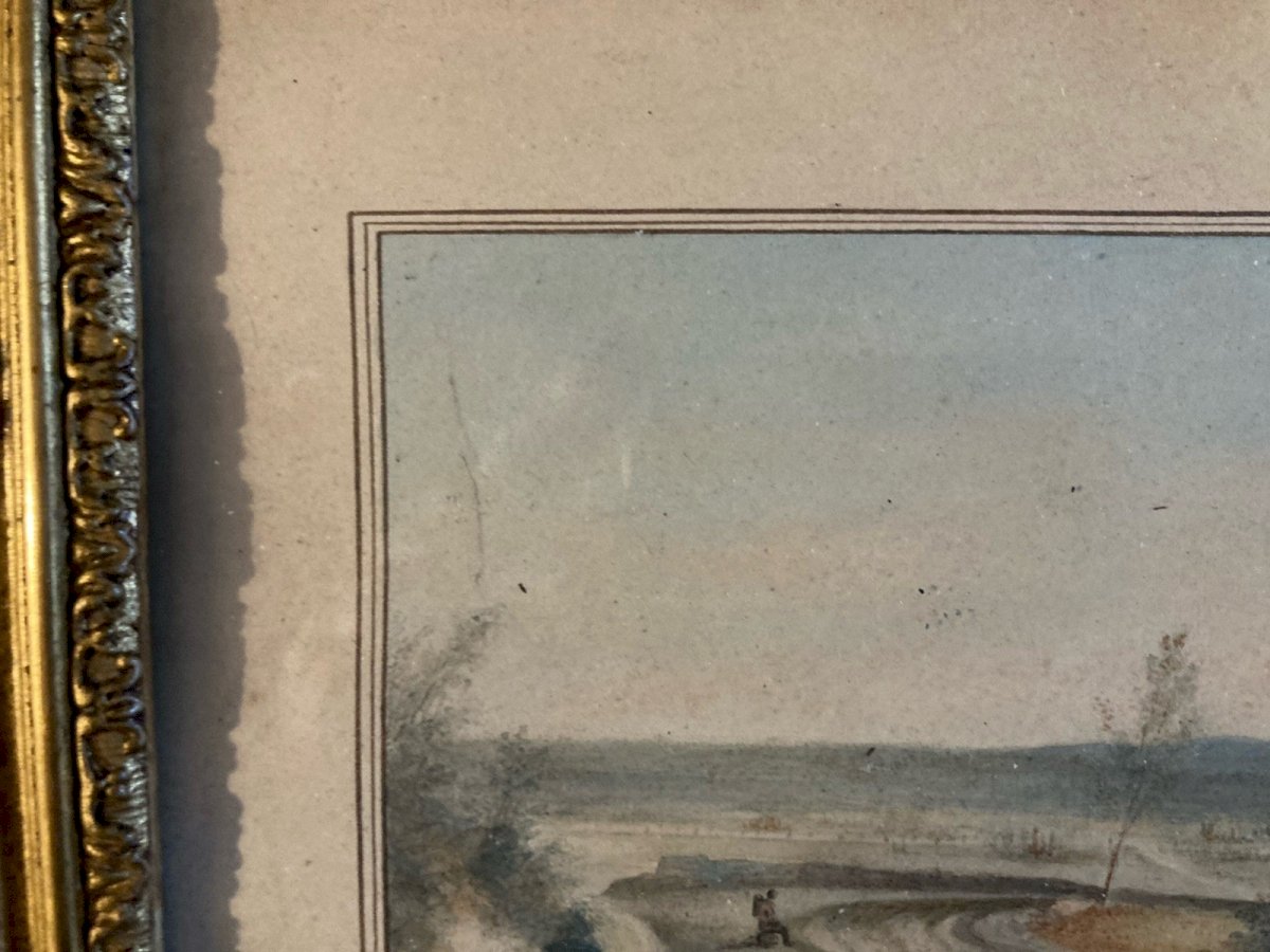 Peinture gouache Papier Paysage Toscane Italie? XIXe Cadre Ancien A Identifier