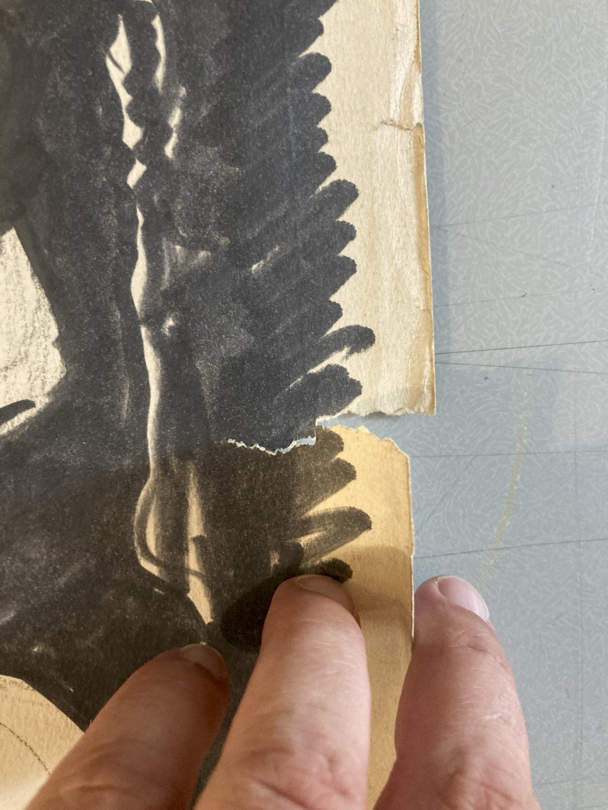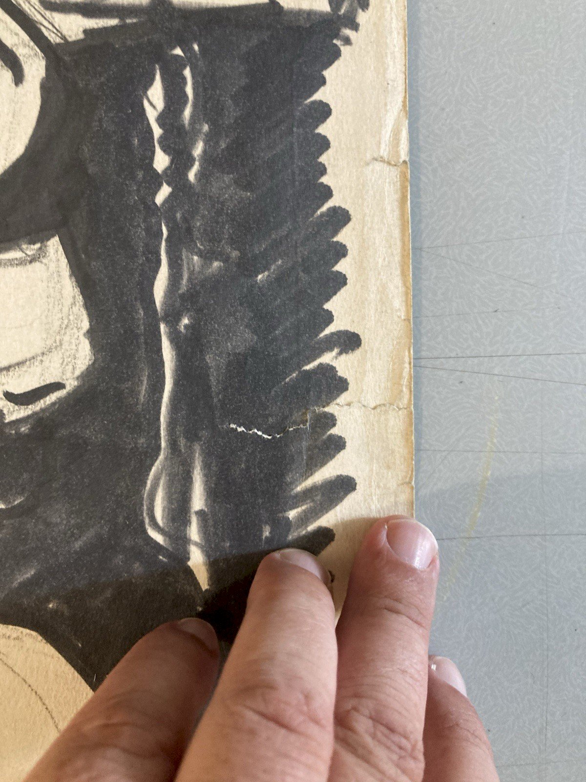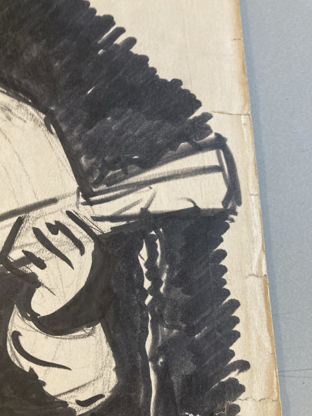 Peinture Homme Portrait Gouache 1960 Guitare Art Encre A Identifier Peint