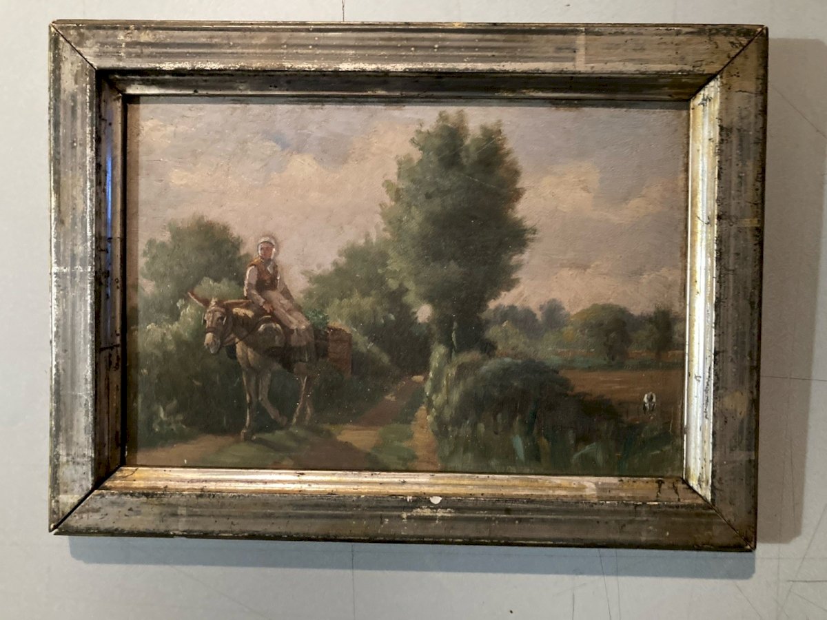 Peinture Huile Bois École Provençale Âne Animal XIXe 1880 A Identifier