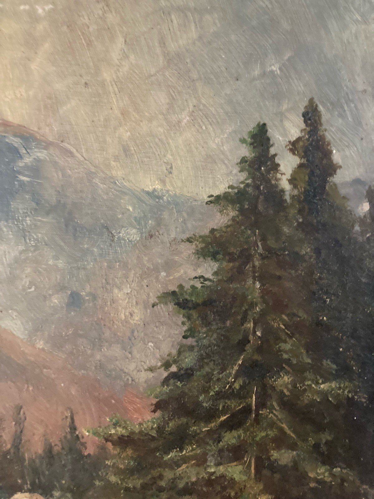 Peinture Huile Carton Riviere Montagne Post Impressionniste Art Ancien