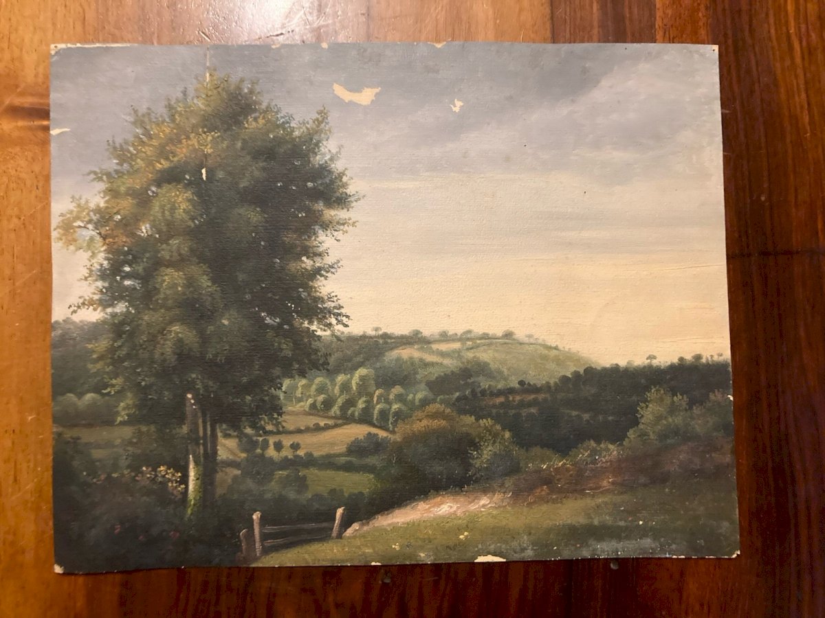 Peinture Huile Papier Paysage À Identifier XIXe Forêt Barbizon École Ancien Art