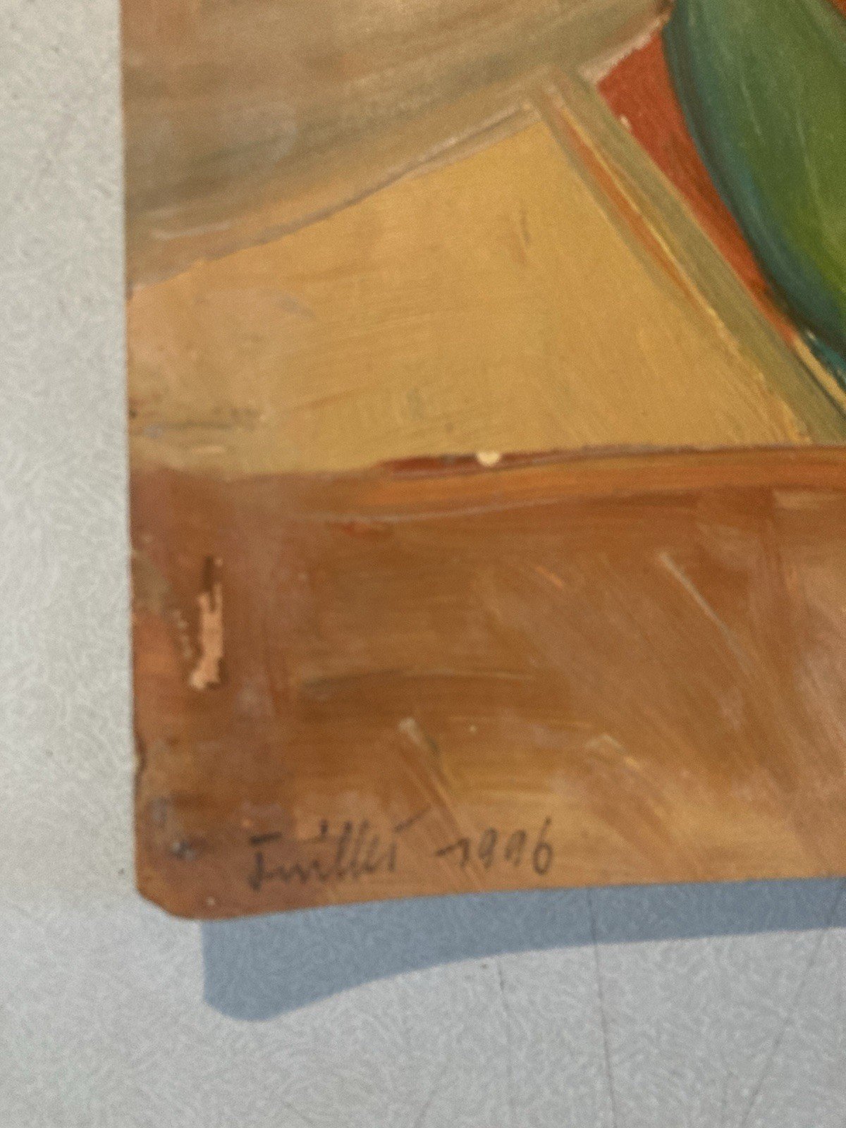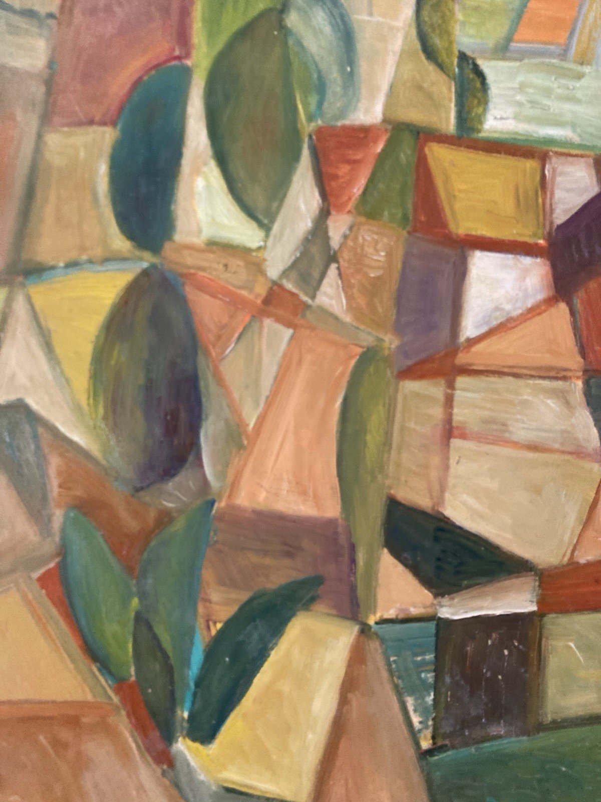 Peinture Huile Sur Papier Abstrait Abstraction 1990 Paysage Art Cubisme