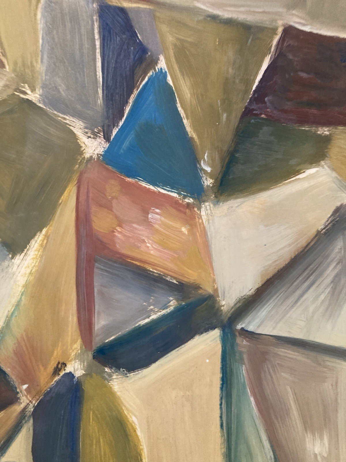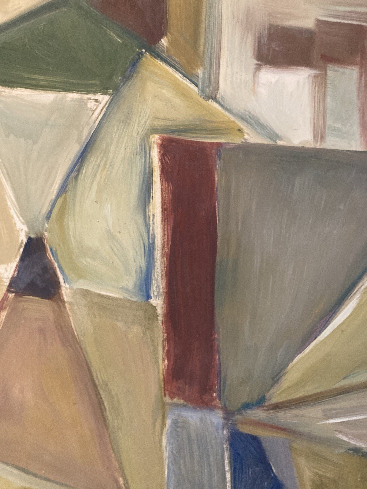 Peinture Huile Sur Papier Abstrait Abstraction 1990 Paysage Cubisme Art
