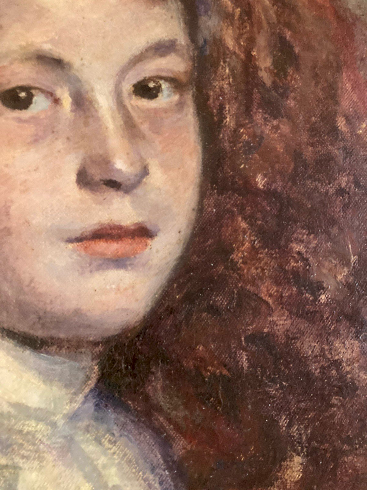 Peinture Huile sur Toile femme portrait 1900 Jeune Fille Rousse Roux