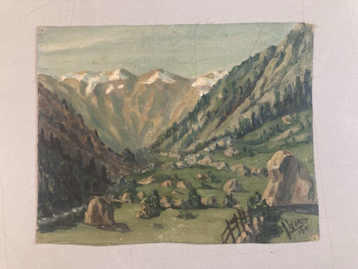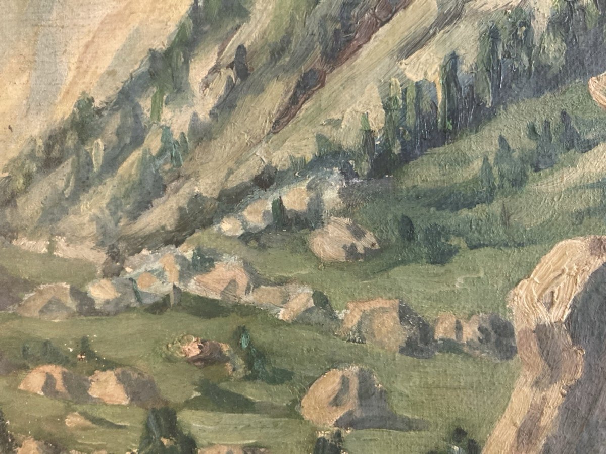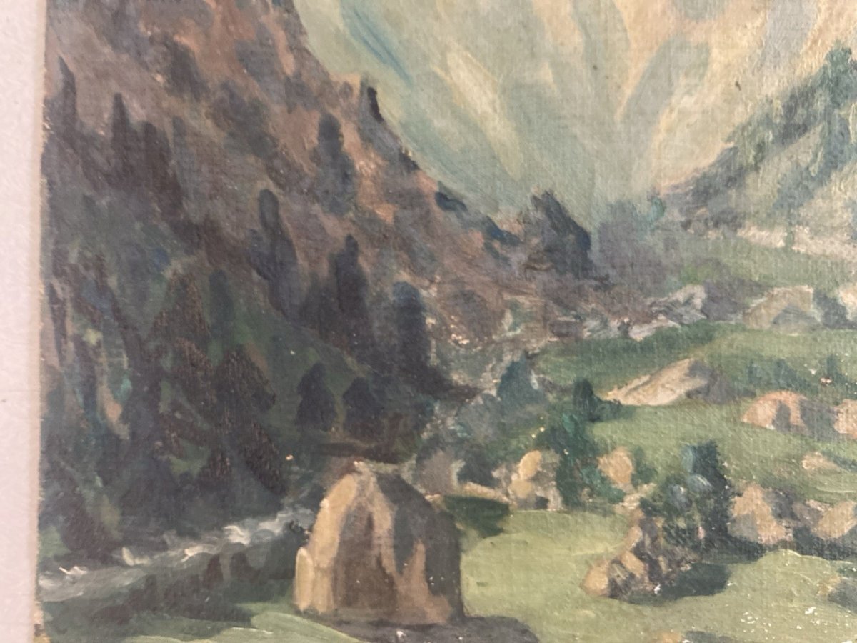 Peinture Huile Sur Toile Montagne Pyrénées ?Art Atelier 1950 Paysage Rocher