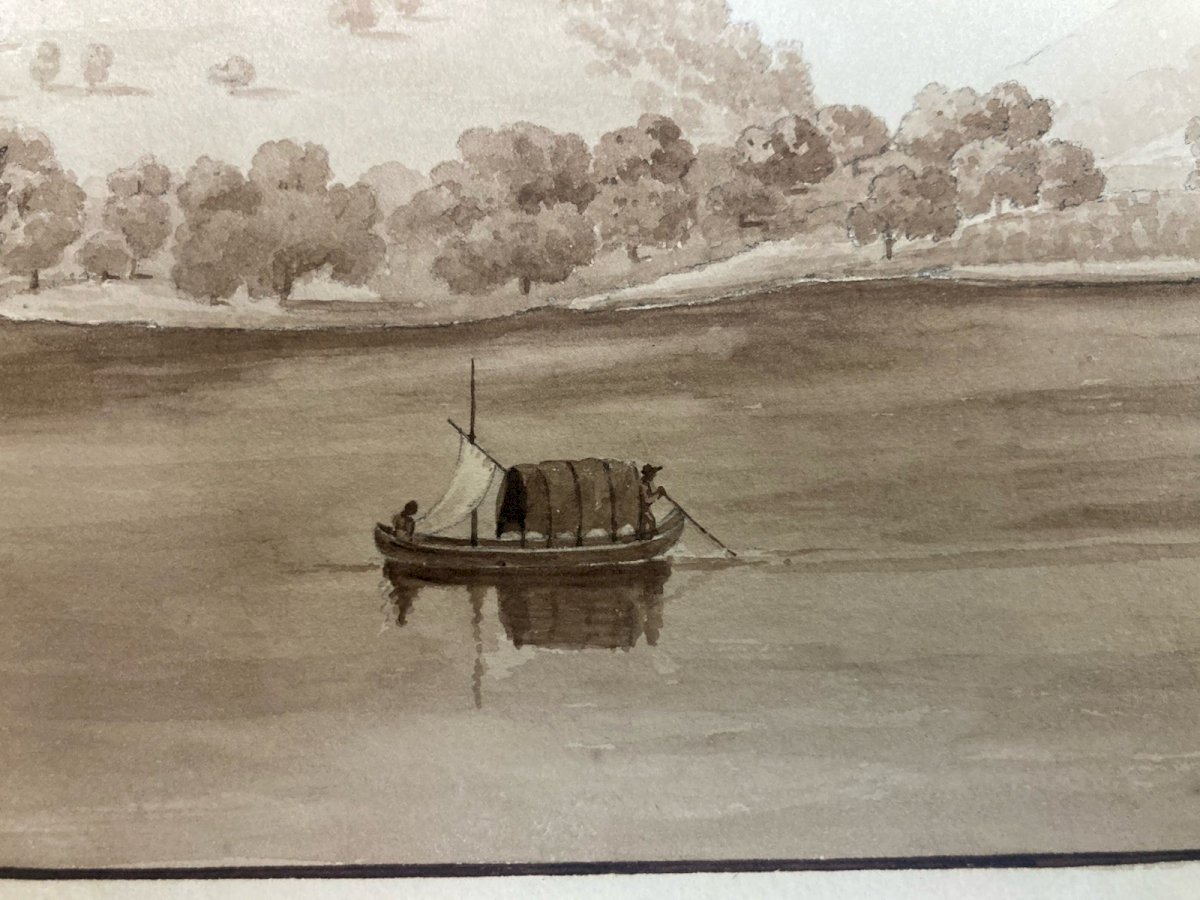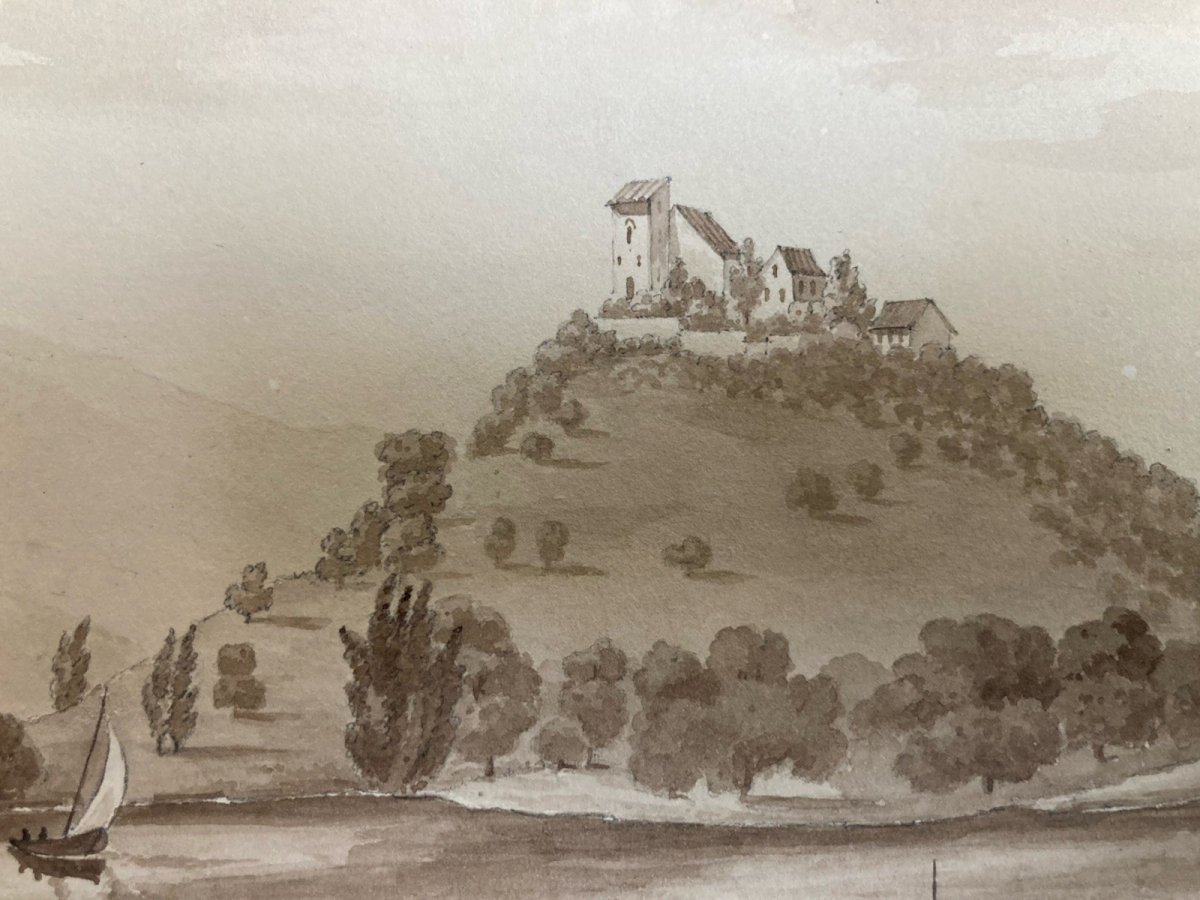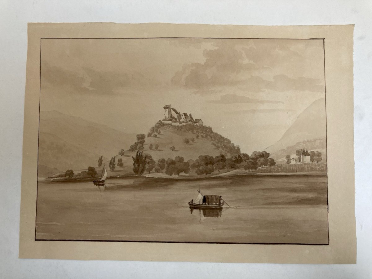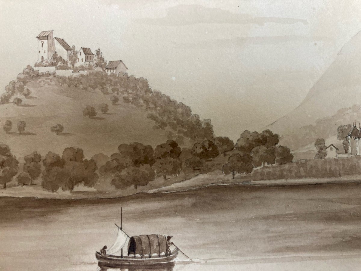 Peinture Lavis Papier XIXe château de Gourdouillon à Sion Ancien Art 1850
