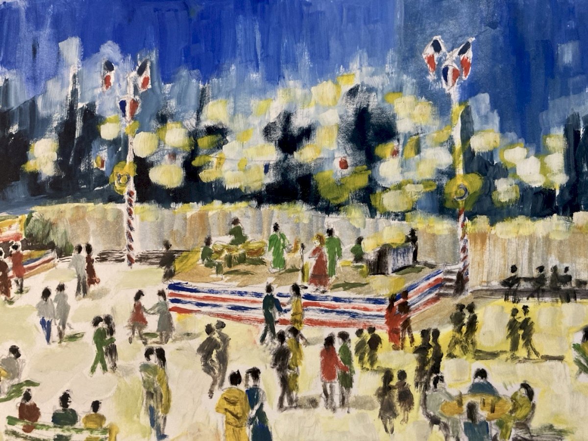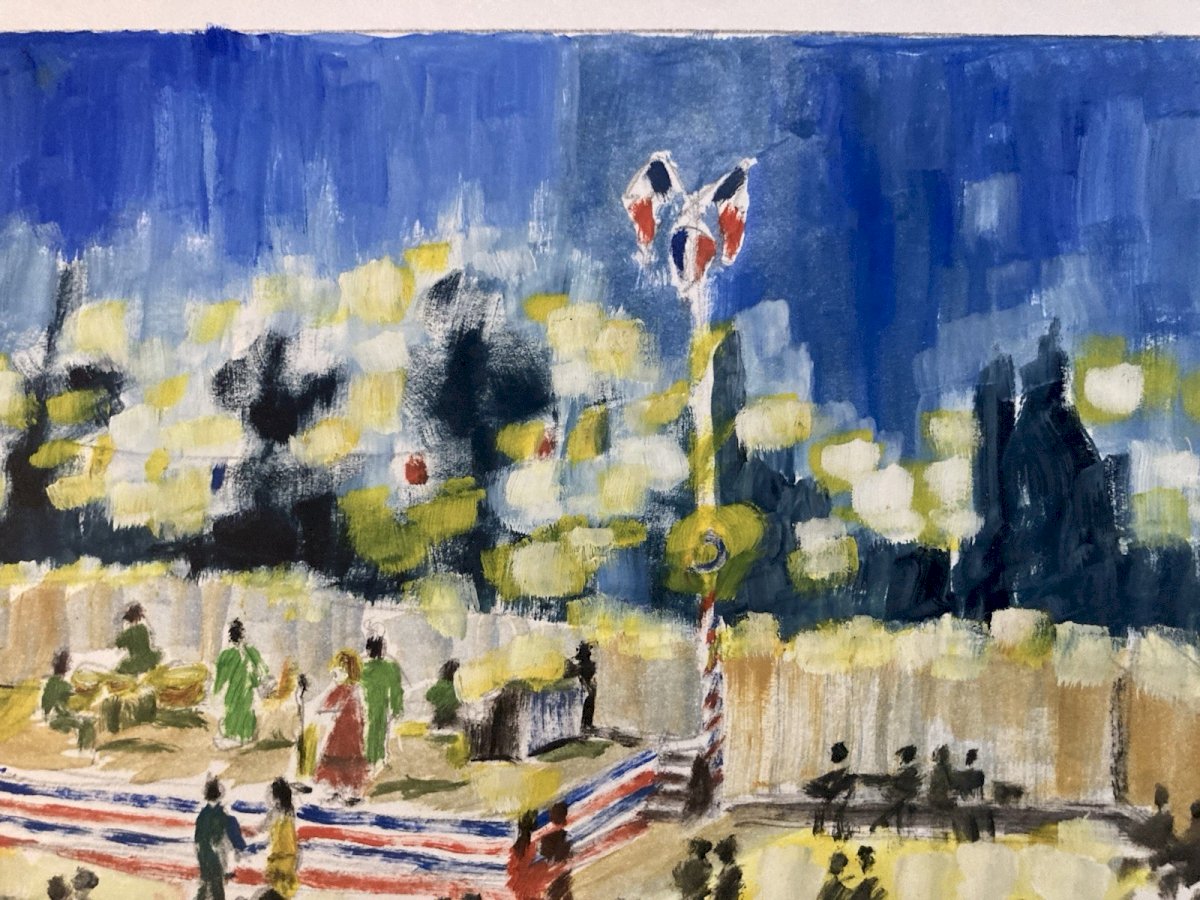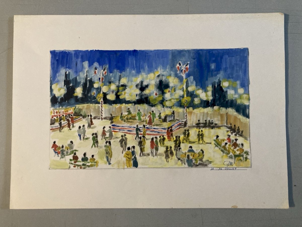 Peinture Original Gallo Huile Papier Paysage Painting 14 Juillet France 1955 Art