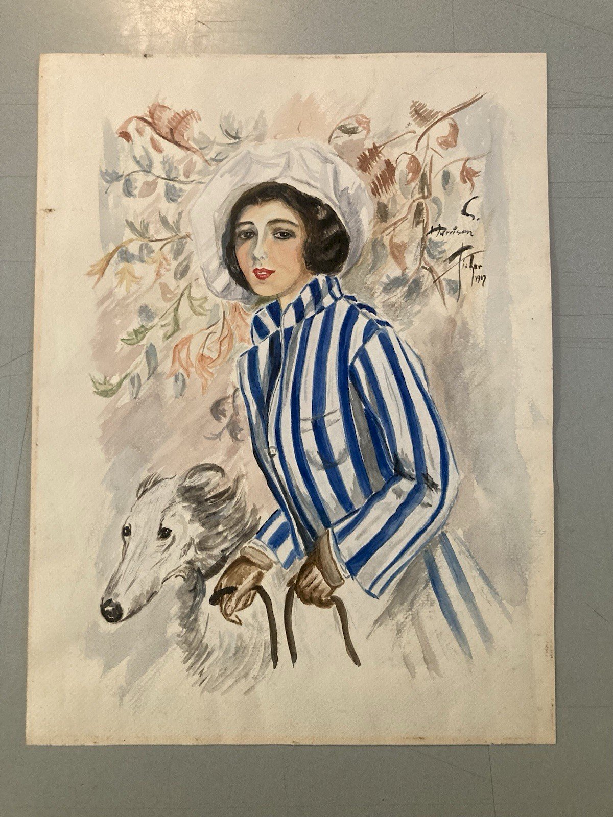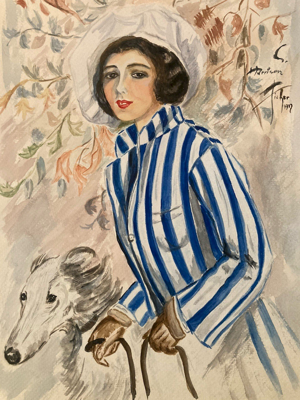 Description : Aquarelle originale signée par Harrison Fisher, datée de 1919. Cette œuvre représente une jeune femme élégante, vêtue d’une robe rayée bleu et blanc, coiffée d’un chapeau, tenant en laisse un lévrier gris. Le fond floral et les détails délicats rappellent le style Art Nouveau et l’âge d’or de l’illustration américaine. Artiste : Harrison Fisher (1875 – 1934), illustrateur américain célèbre pour ses portraits de femmes élégantes, régulièrement publiés en couverture de magazines comme Cosmopolitan ou The Saturday Evening Post. État : bon état général.voir photo. Format : (voir la dernière des photos) Expédition : Soigneusement emballé et expédié avec suivi. Biographie de Harrison Fisher Harrison Fisher est né le 27 juillet 1875 (ou 1877) à Brooklyn, New York, dans une famille d’artistes. Son père et son grand-père étaient eux-mêmes peintres, ce qui lui permit de recevoir une formation artistique précoce. Il étudia à la San Francisco Art Association et devint l’un des illustrateurs les plus en vue de son époque, aux côtés de Howard Chandler Christy et Neysa McMein . Fisher est surtout connu pour ses illustrations de femmes élégantes, souvent publiées en couverture de magazines tels que Cosmopolitan, The Saturday Evening Post, ou encore The Ladies’ Home Journal. Ses œuvres, caractérisées par des traits délicats et une grande élégance, ont marqué l’âge d’or de l’illustration américaine. Il fut également membre du jury du concours "Fame and Fortune" du magazine Motion Picture Classic, qui révéla Clara Bow . Il mourut le 19 janvier 1934 à New York, laissant derrière lui un héritage artistique majeur dans le domaine de l’illustration et de la publicité Produits recommandés Provided by Beau Dessin Femme Gouache Peinture Art Corps 1960 Sur Papier étude Ancien XXe Voir le produit Beau Dessin Femme étude Gouache Soleil Île Ancien 1960 Art Sur Papier classique Voir le produit Authenticité:Original Type:Dessin Pays d'origine:France Matériau:Gouache Genre:Japonisme Thème:Personnage