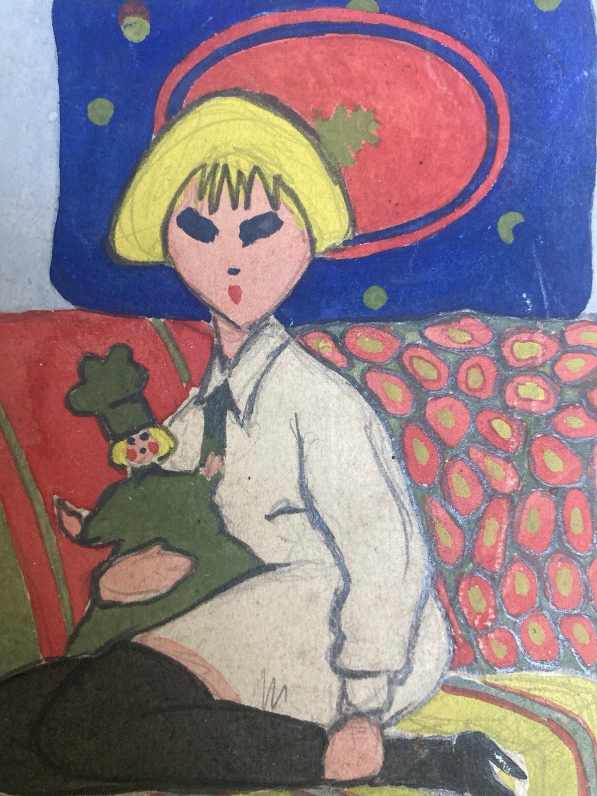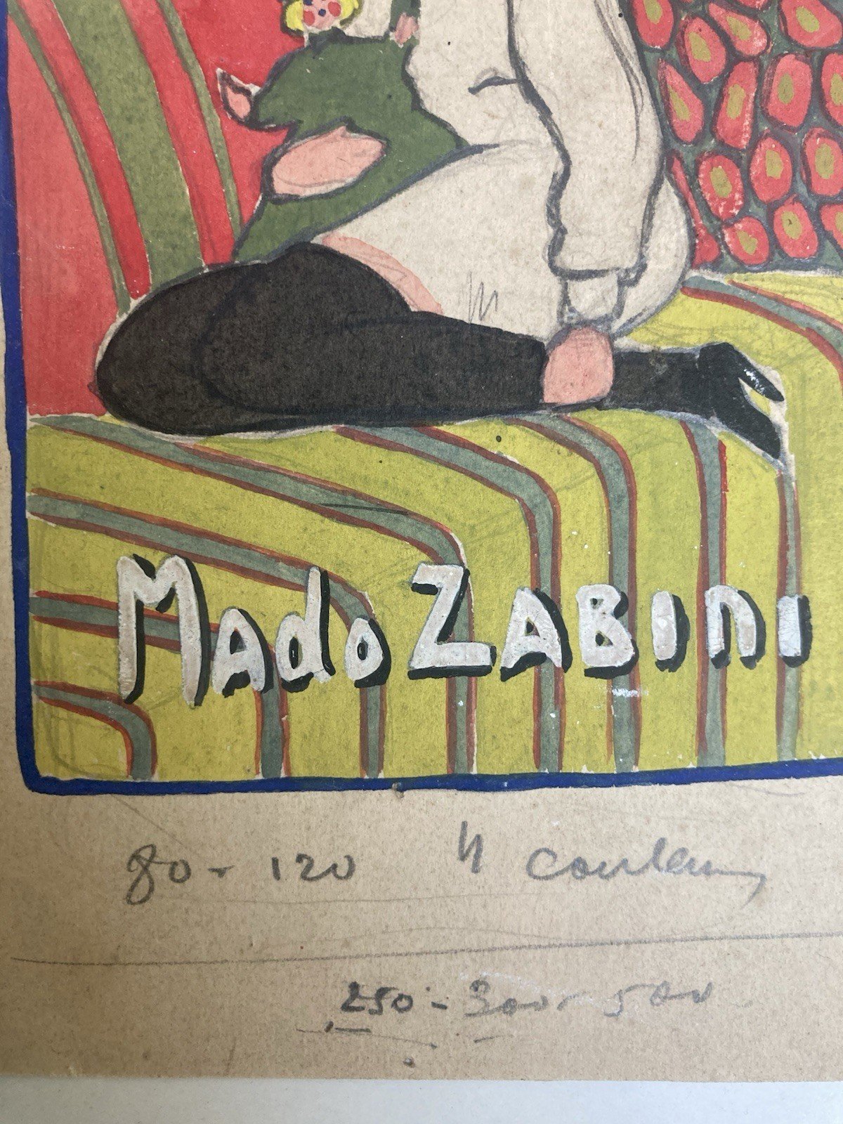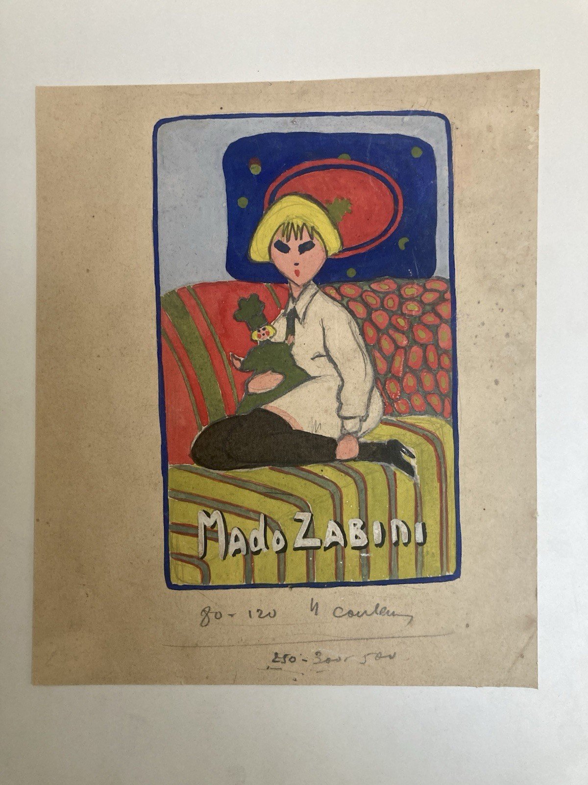 Peinture Papier Portrait Mado Zabini Marionnette Spectacle Programme 1920 Ancien