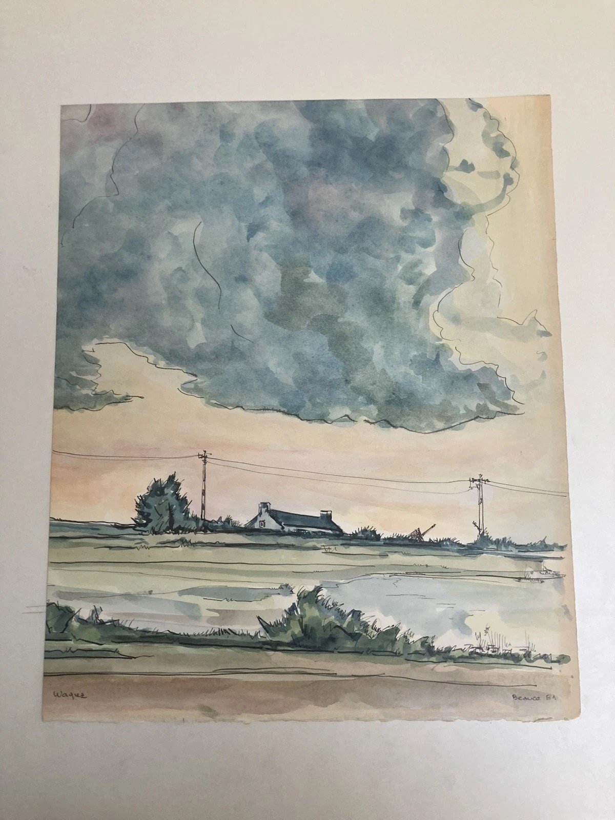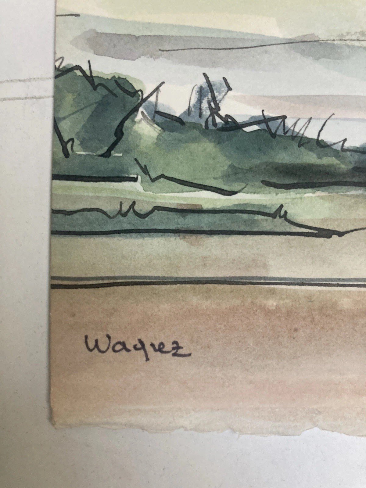 Peinture Plaine De La ce Art Wagrez a Identifier Ciel Nuage 1980 XXe