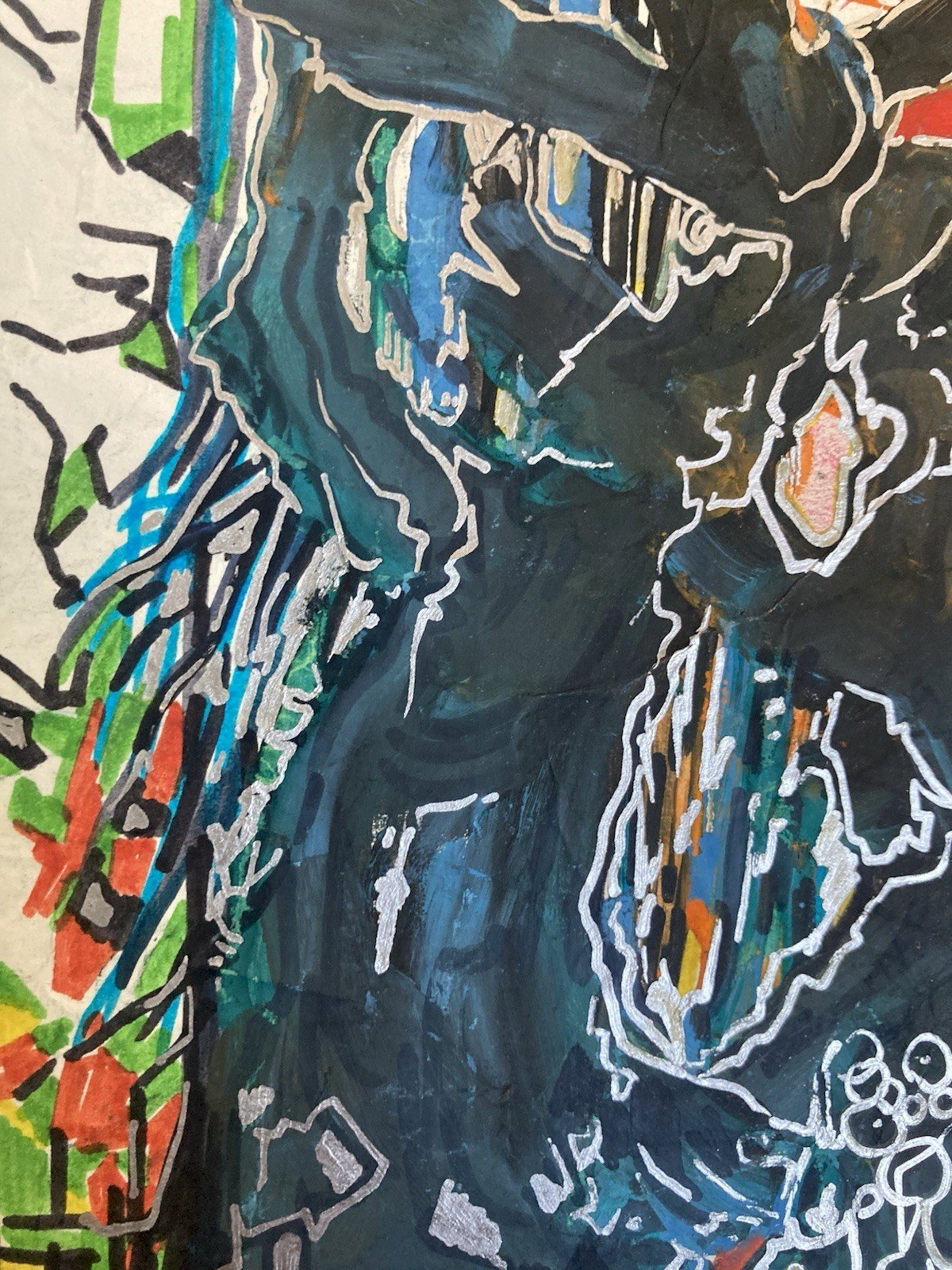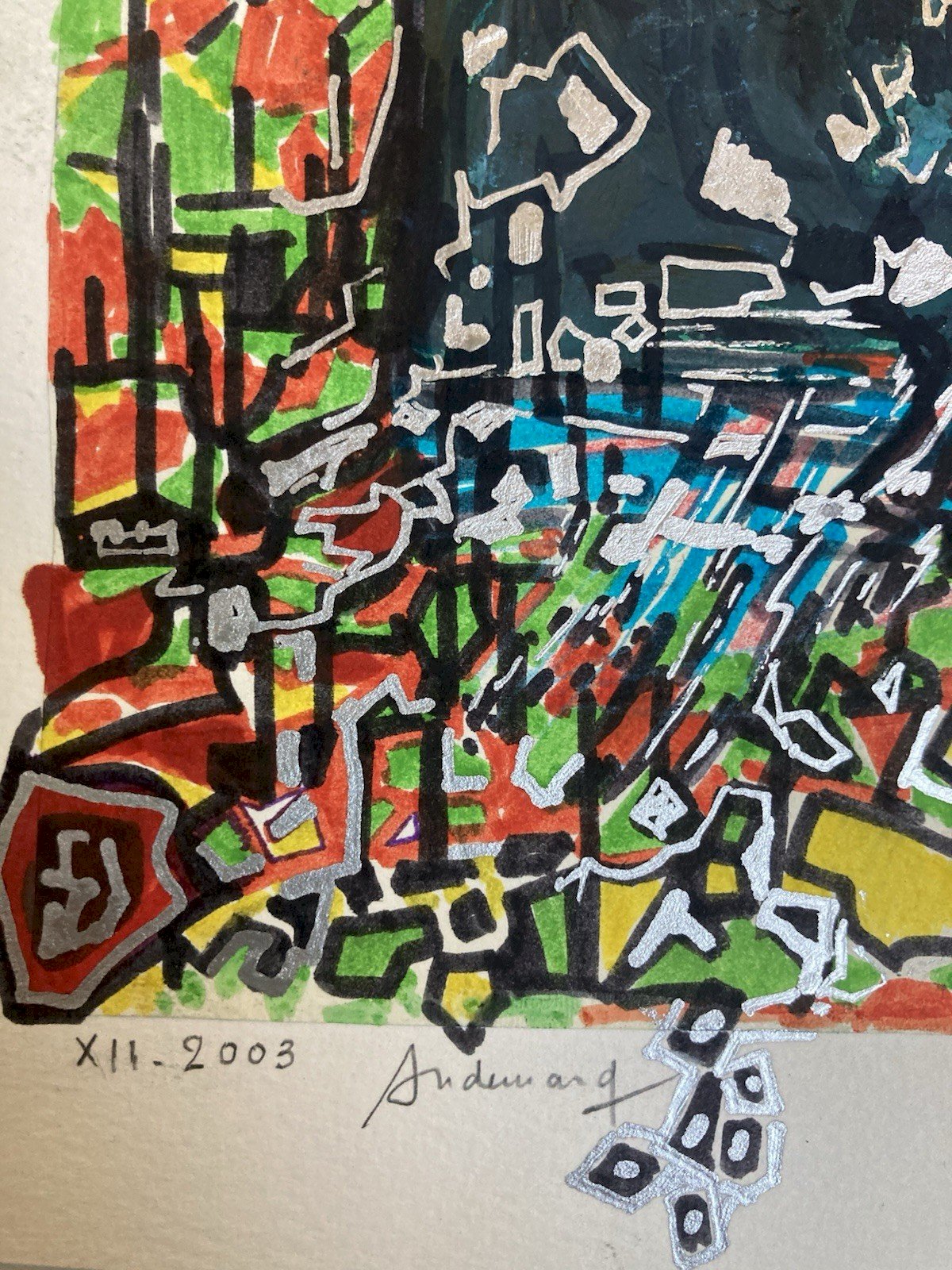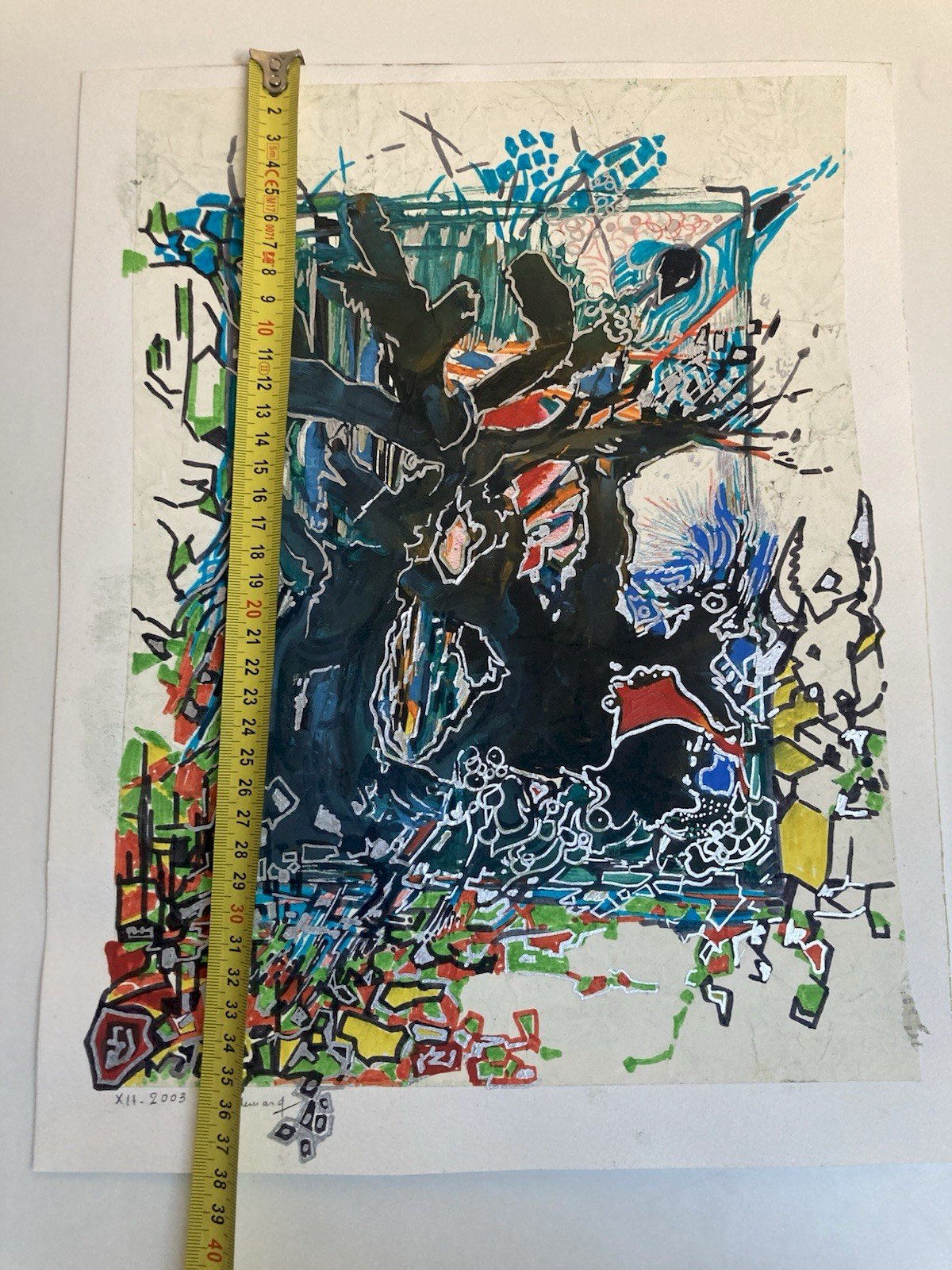 Peinture Technique Mixte Gouache Feutre Crane Vache Abstrait Abstraction 2000