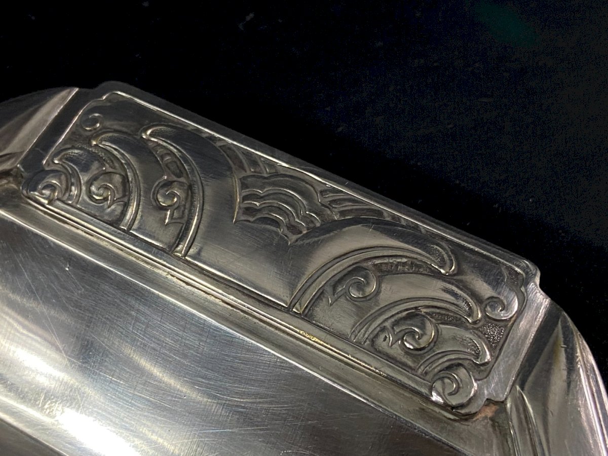 Pelle de table en métal argenté Art Déco 1930 Dimensions max : 21,7 x 18,1 x 2,4 cm Très belle densité de matière Poids : 476 grammes Je ne signalerais que de fines rayures d'usages Envoi TRES soigné dans le monde entier Pays d'origine:France Authenticité:Original Type:Arts de la table, Cuisine Période:Art Déco Origine:France Sous-type:Pelle de table Matière:Métal argenté