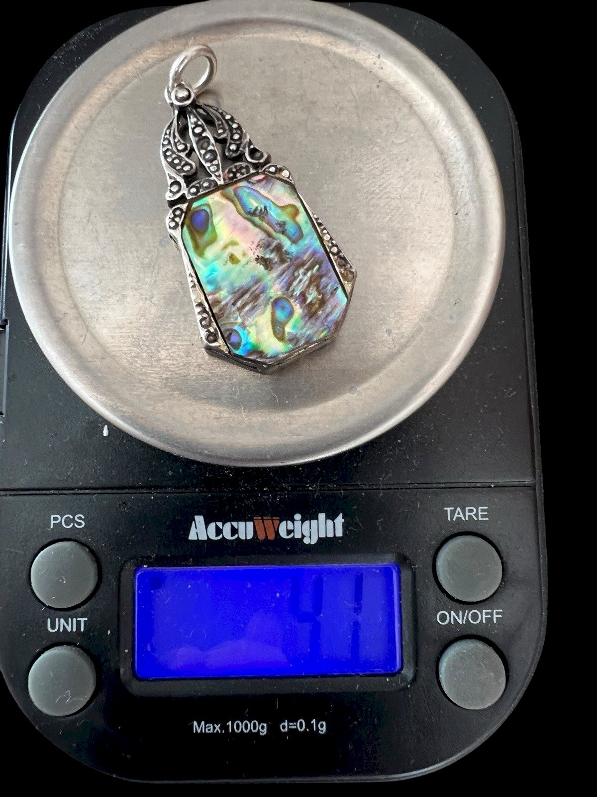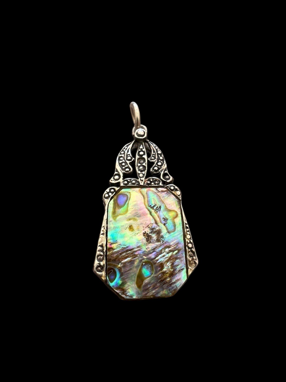 Pendentif argent massif et nacre vintage style art déco élégant et chic