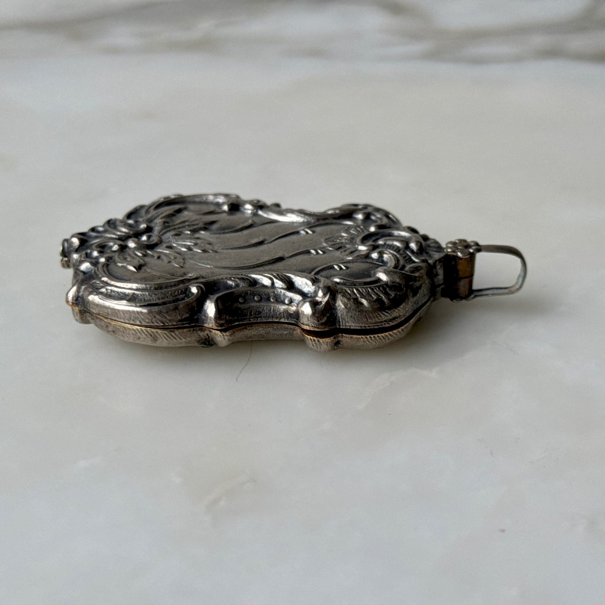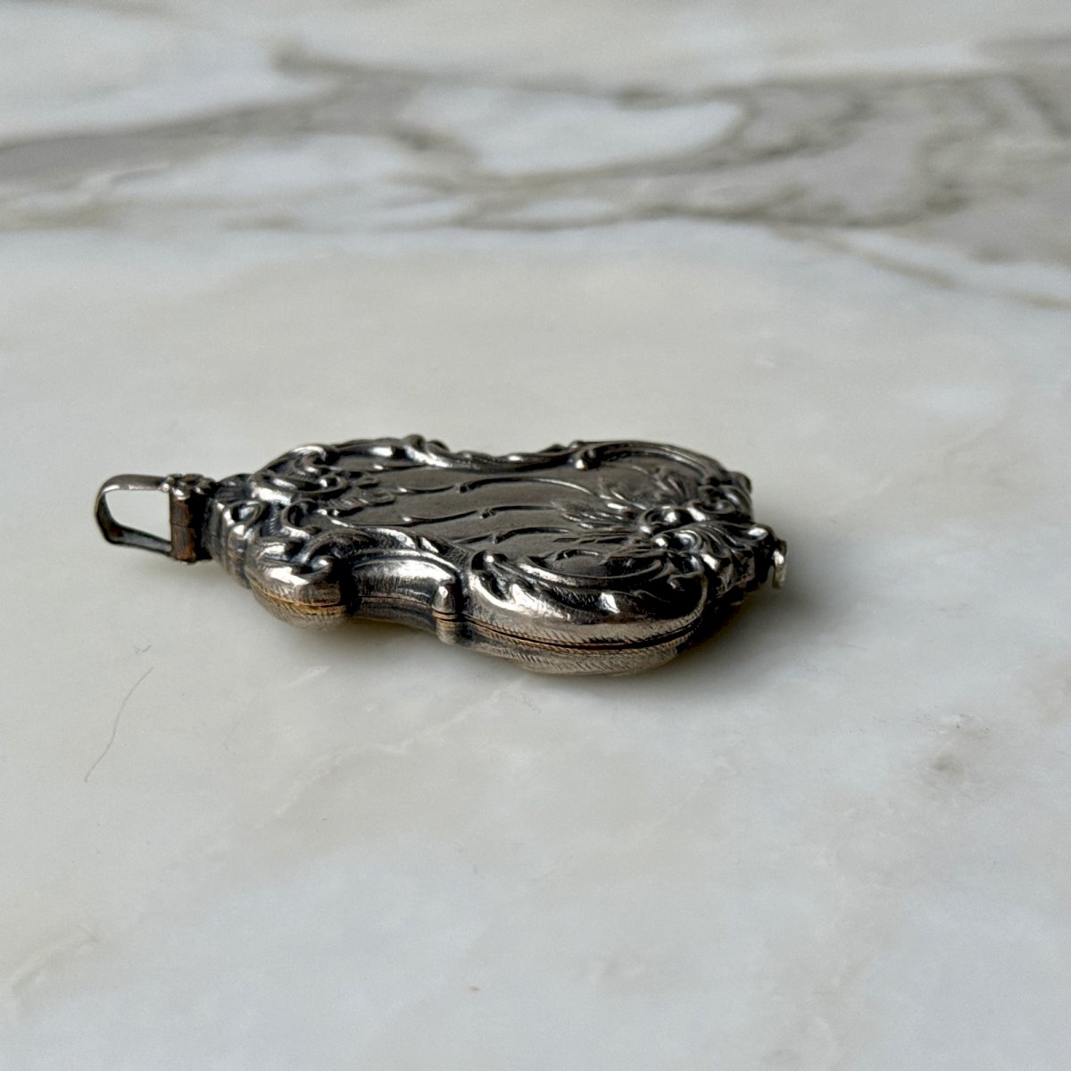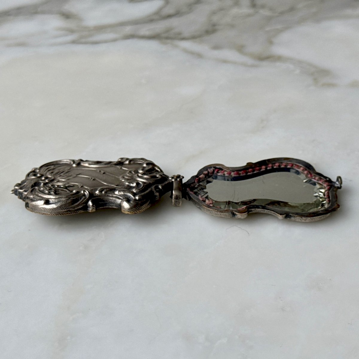 Pendentif miroir 1900 Art Nouveau en métal argenté M3969