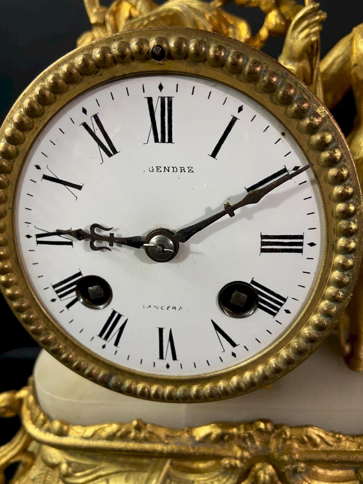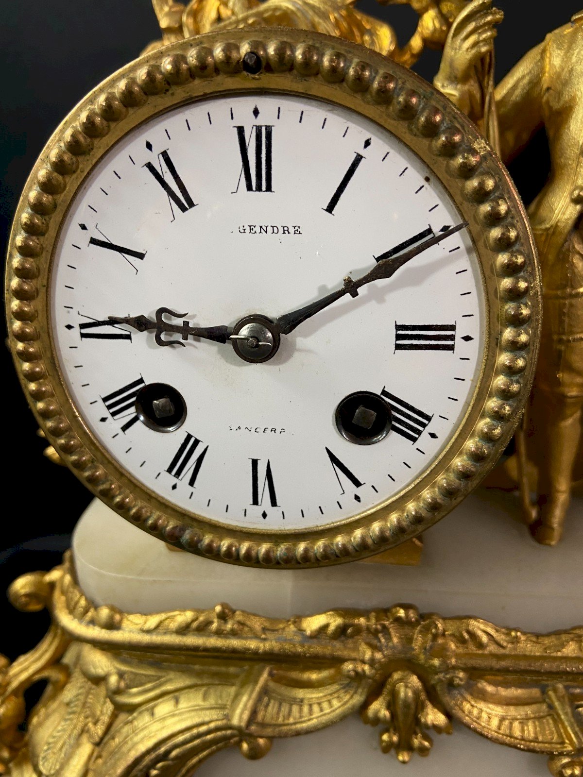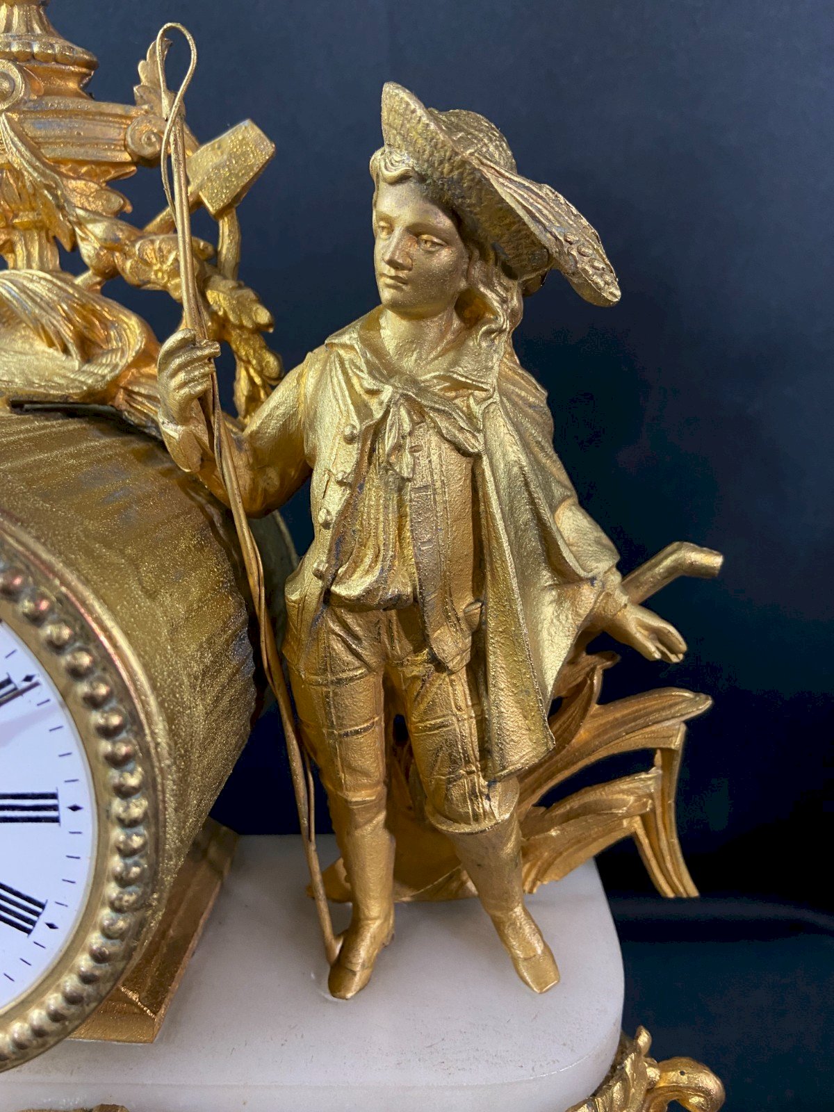 Pendule de cheminée Napoléon III au personnage masculin champêtre en métal doré