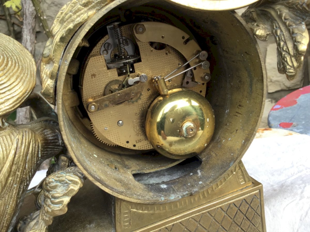 Pendule de cheminée XIXe Napoléon III bronze doré – MADE in italy