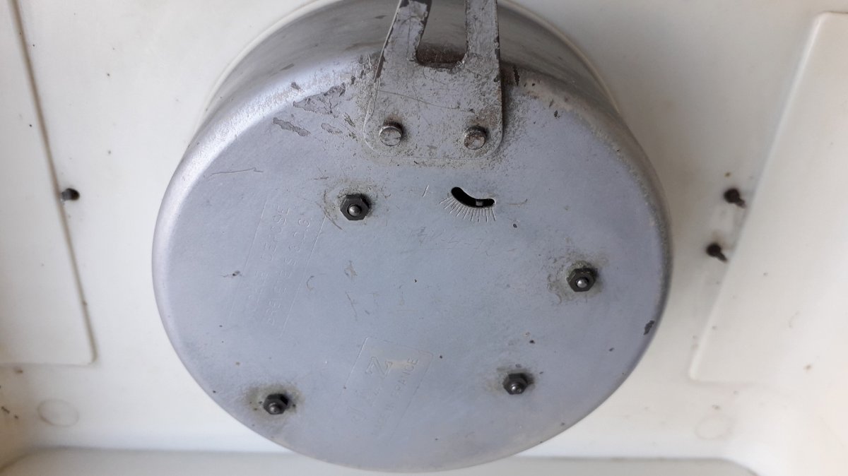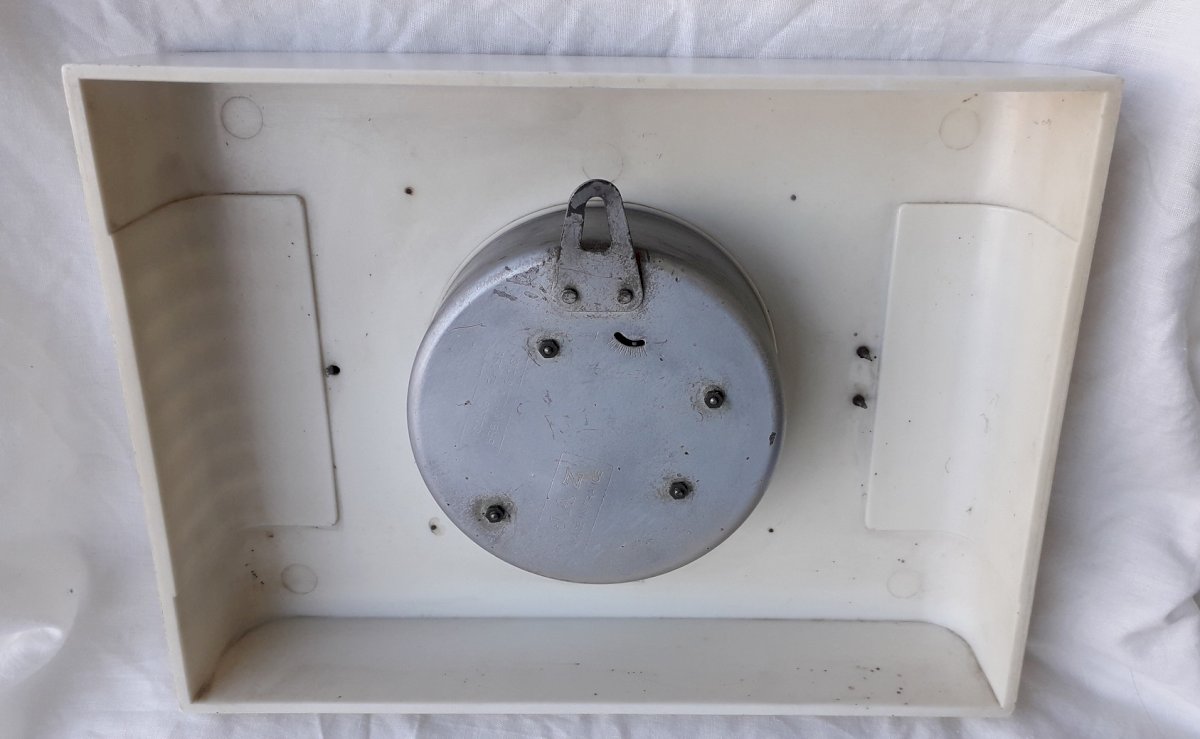 Pendule de la marque Jaz, en plastique, cadran en verre bombé, mécanique.