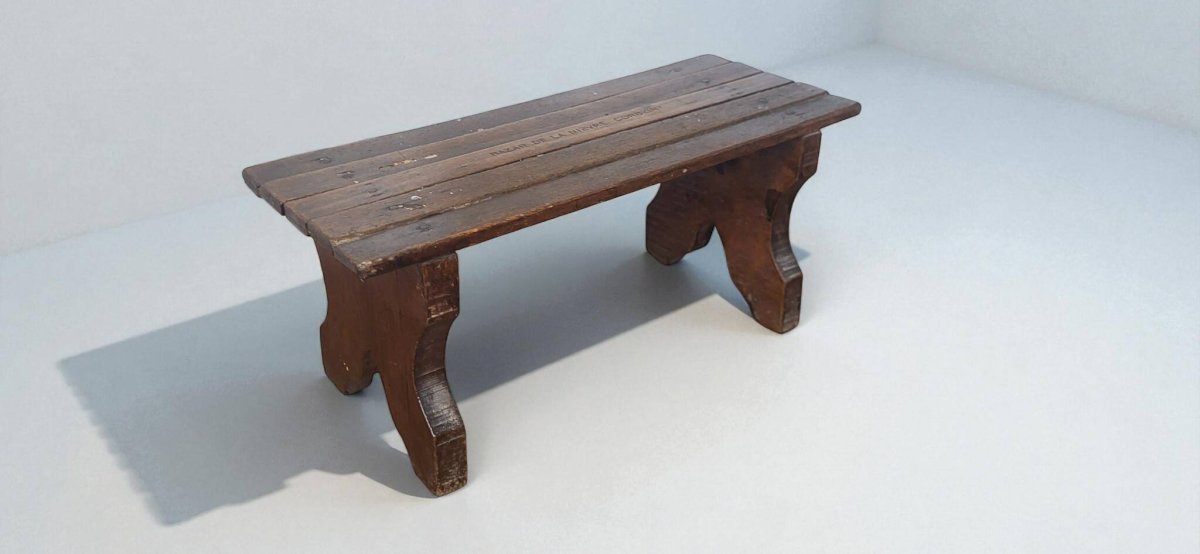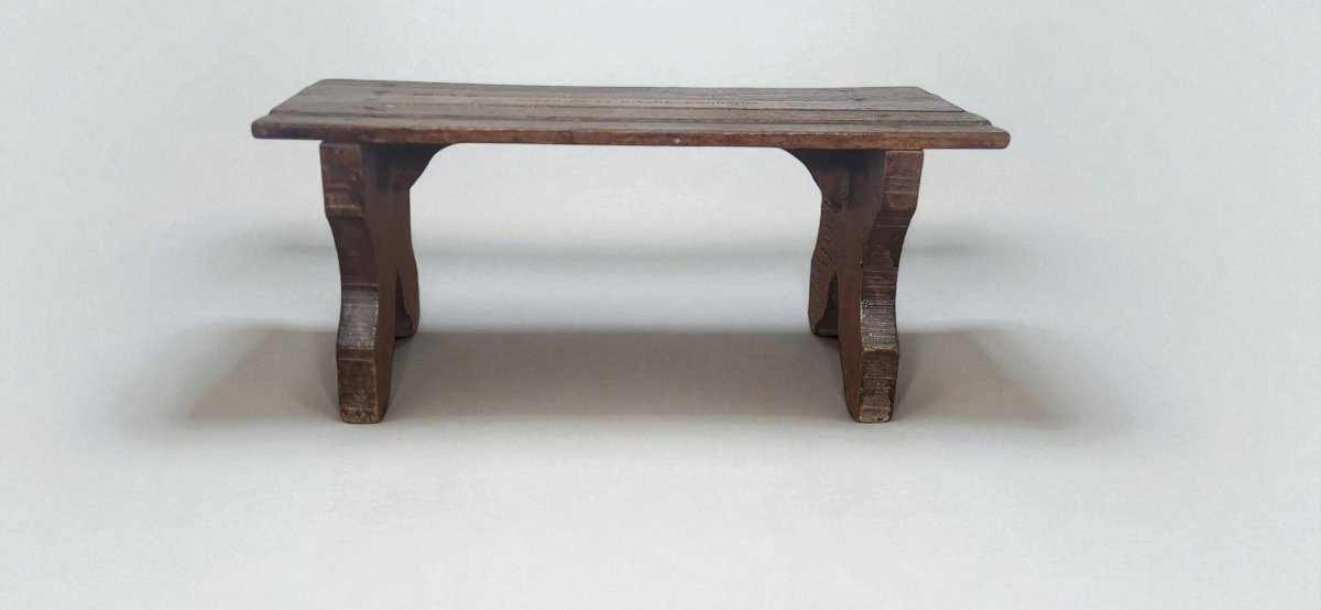 Petit banc / repose pieds en bois / Bazar de Corbigny du temps où existait les Bazar's !Hauteur 13, 3 cm.Dimensions 12*30 cm.En bon état avec traces d'usage et d'ancienneté.