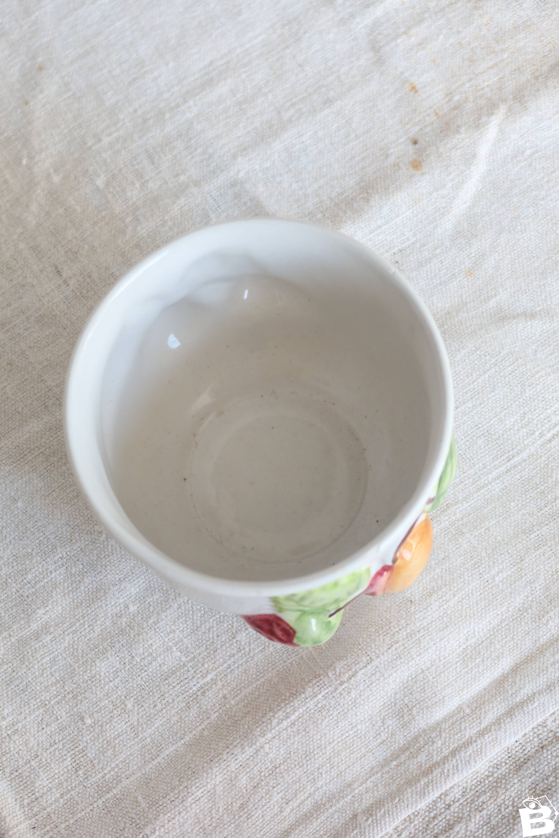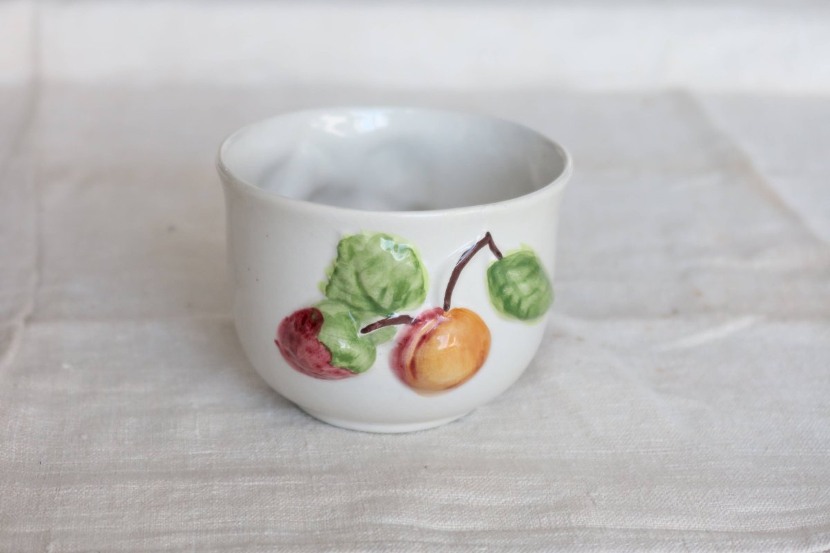 Petit bol vintage en faïence blanche - Décor barbotine fruits