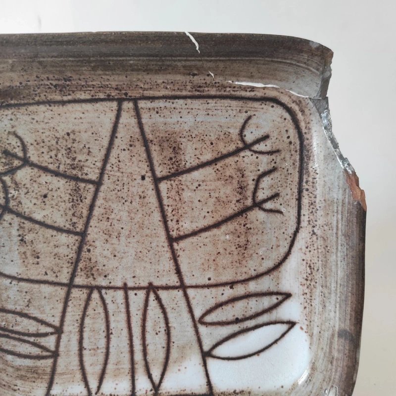 Petit plat, coupelle ou vide-poches en céramique de Jacques Pouchain pour l'atelier Dieulefit Travail des années 50-60 En bon état général un éclat sur un angle à restaurer,voir photo Mesures en photos Envoi rapide et soigné ?? Pas de VintedGo merci ?