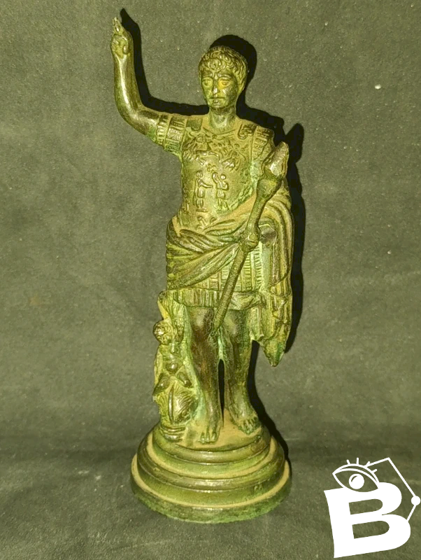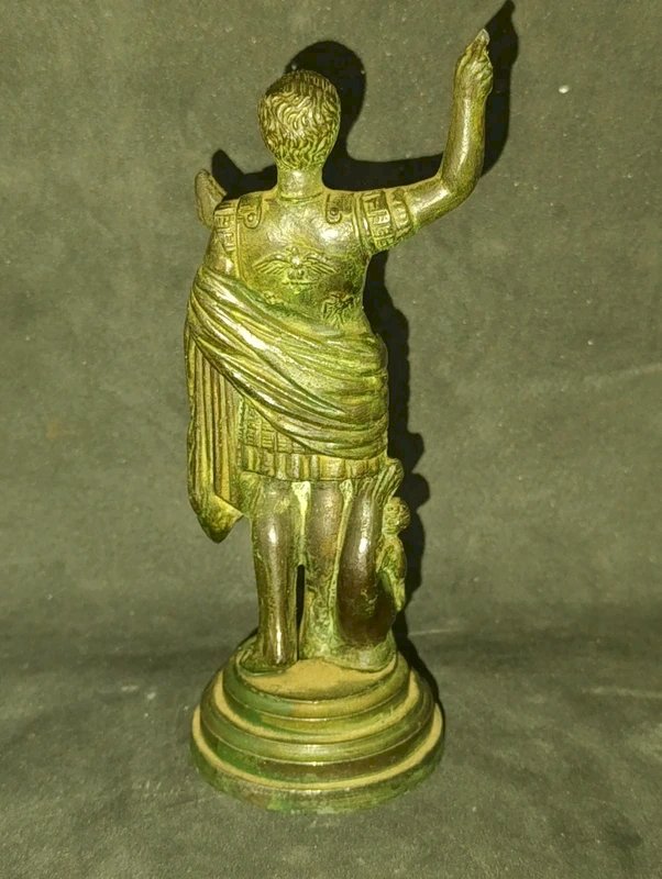 petite sculpture en regule? couleur bronze representant jules cesar en bon etat sans doute debut 20eme hauteur 14.5cm matiere a confirmer marque "made in italy" sous la base